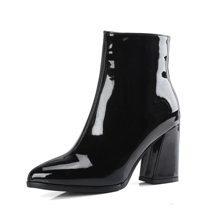 공장 대외 무역 플러스 사이즈 발목 부츠 여자의 두꺼운 굽 패션 부츠 뾰족한 마틴 부츠 섹시한 여자의 부츠 거울 발목 부츠