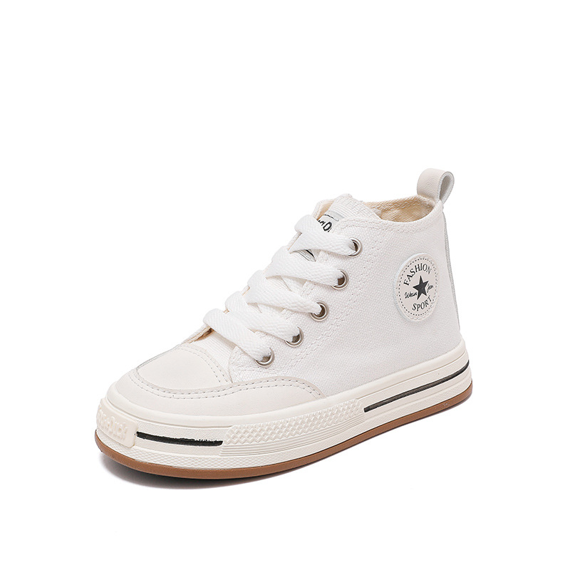 어린이 흰색 신발 소년 하이 탑 캔버스 신발 2025 봄과 가을 새로운 유치원 실내 입학 신발 소녀 운동화