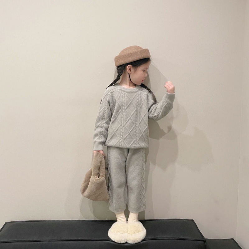 한국 어린이 빈티지 트위스트 공예 세트 2024 가을과 겨울 아기 소녀 스웨터 니트 바지 패션 투피스 세트스토어 가기