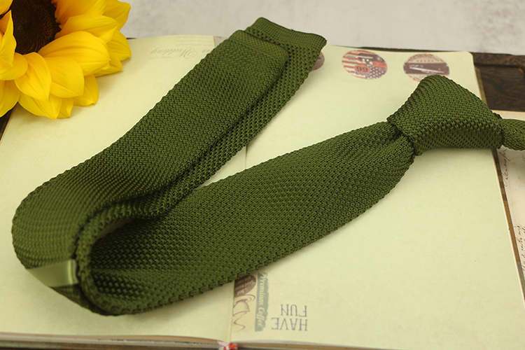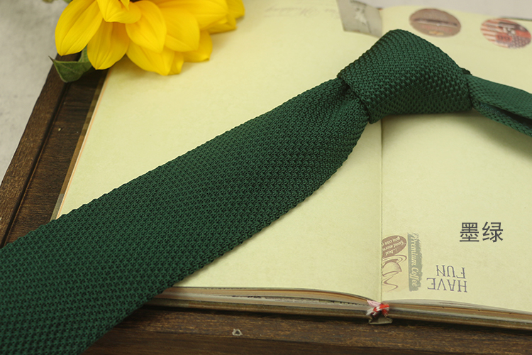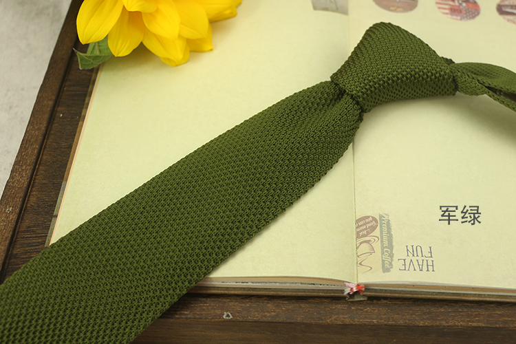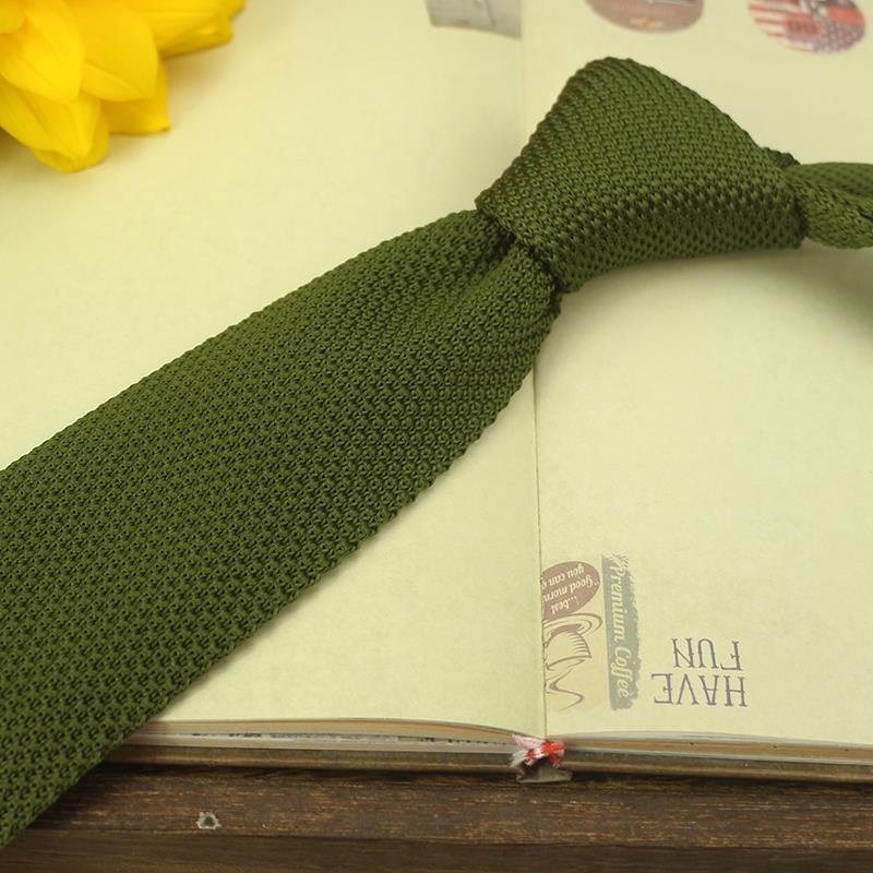 넥타이 남자의 영국 캐주얼 모든 경기 여자의 대학 스타일 6cm 단색 다크 그린 니트 플랫 헤드 개인 작은 카키 손