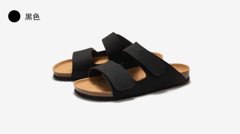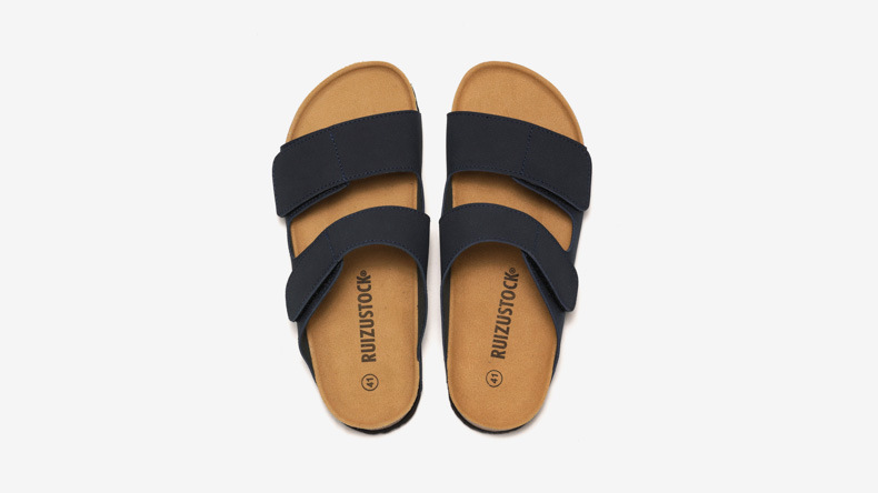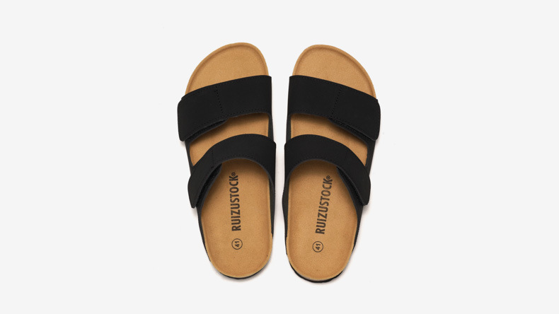 RUIZUSTOCK 남성용 코르크 슬리퍼 트렌디 한 학생 한 단어 드래그 더블 스트랩 남성용 샌디 가죽 비치 슈즈