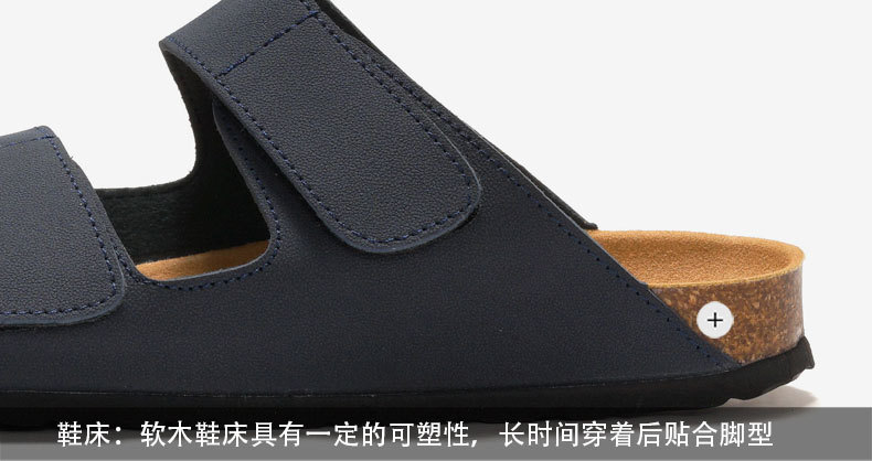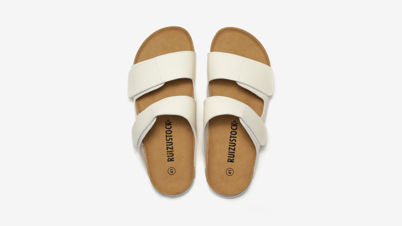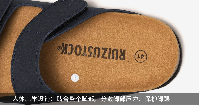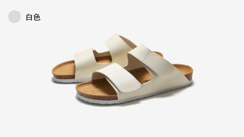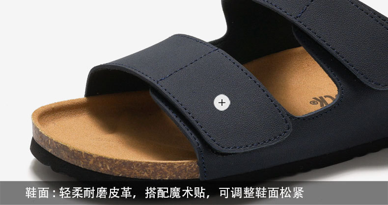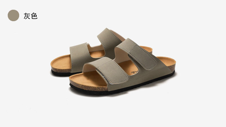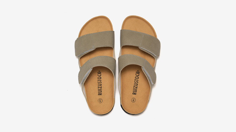 RUIZUSTOCK 남성용 코르크 슬리퍼 트렌디 한 학생 한 단어 드래그 더블 스트랩 남성용 샌디 가죽 비치 슈즈스토어 가기