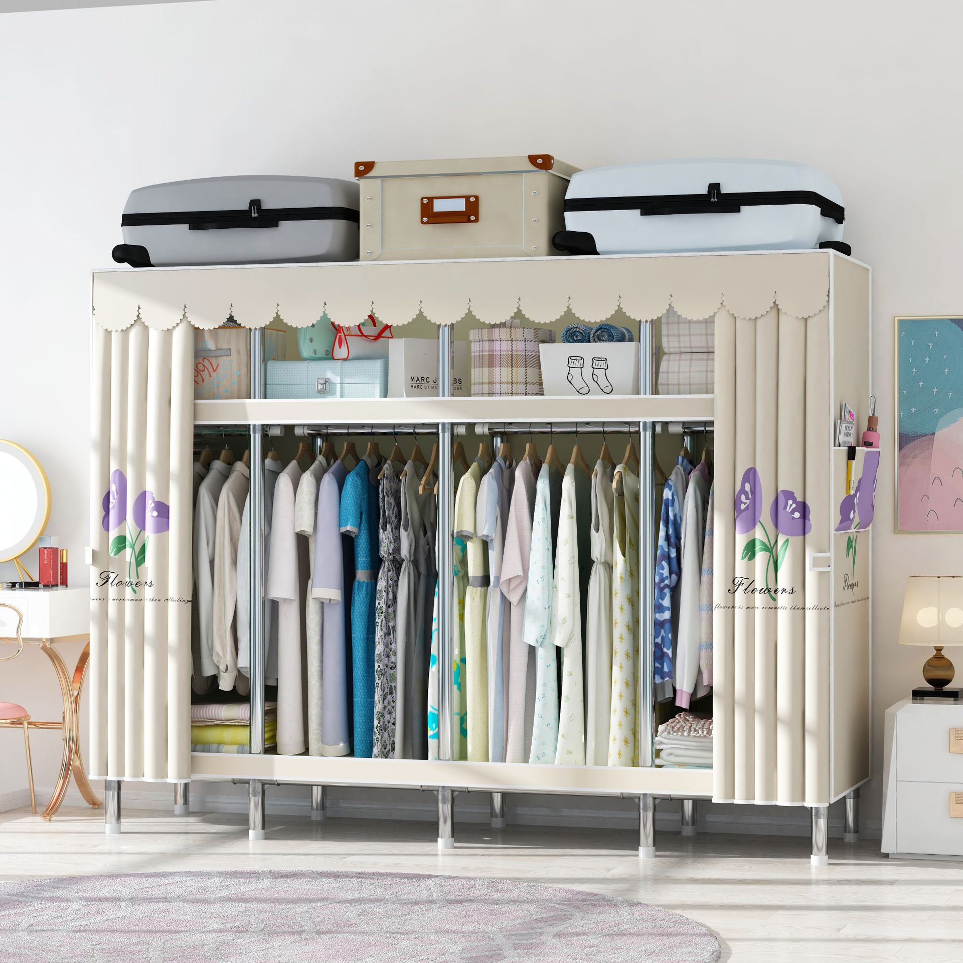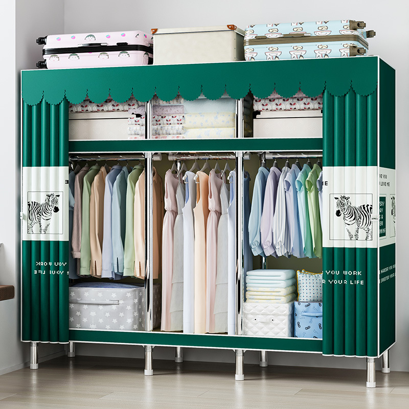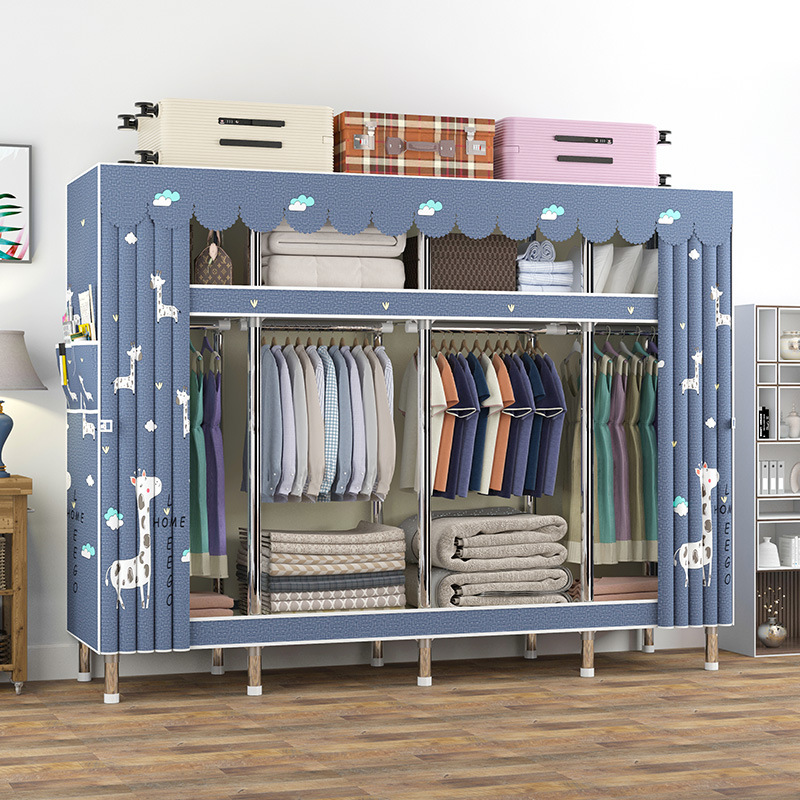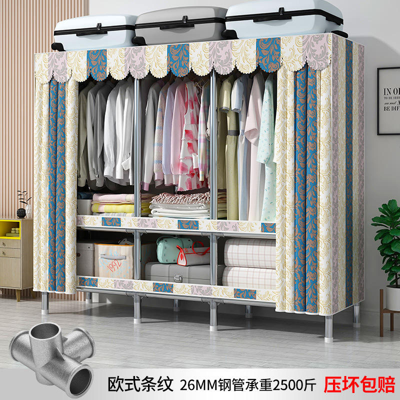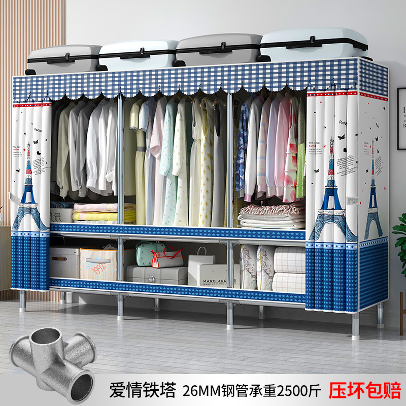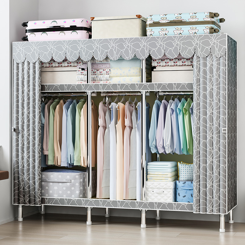 맞춤형 강철 파이프 천 옷장 임대 방을위한 간단한 옷장 강력하고 튼튼한 강철 파이프 프레임 옷장 홈 침실스토어 가기