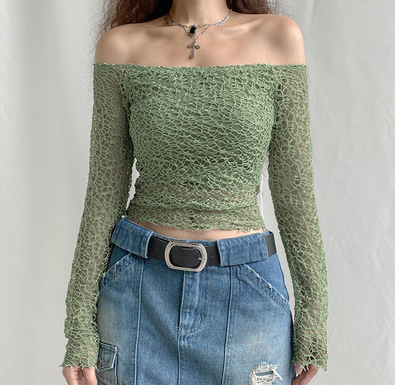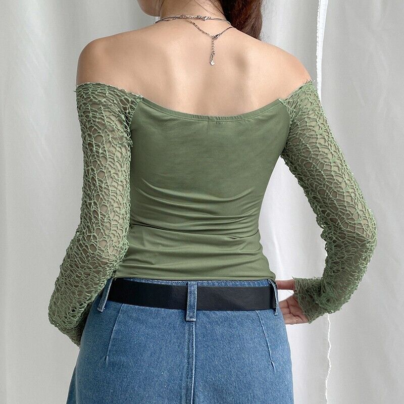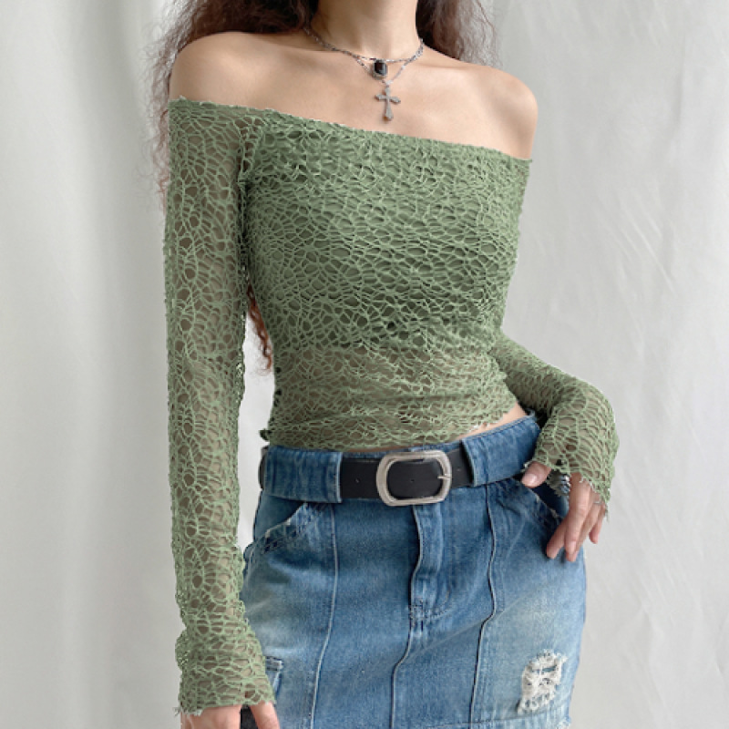 2021 아마존 AliExpress 새로운 여성 인쇄 긴 소매 메시 탑