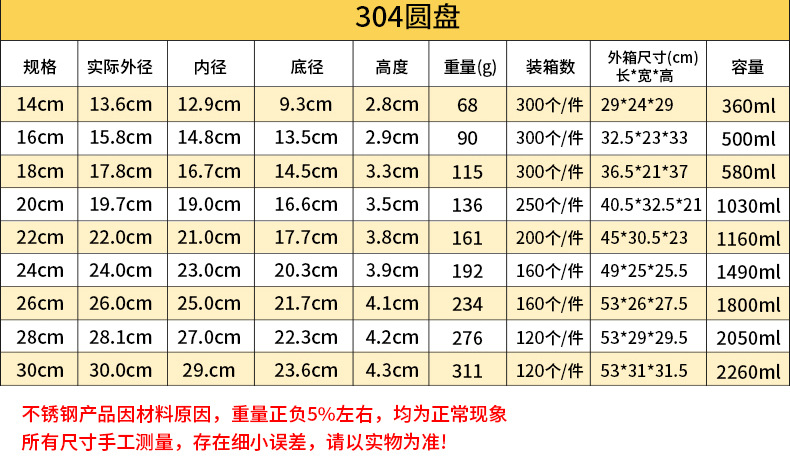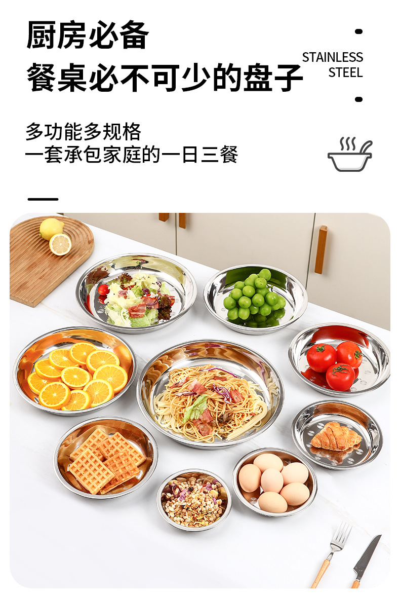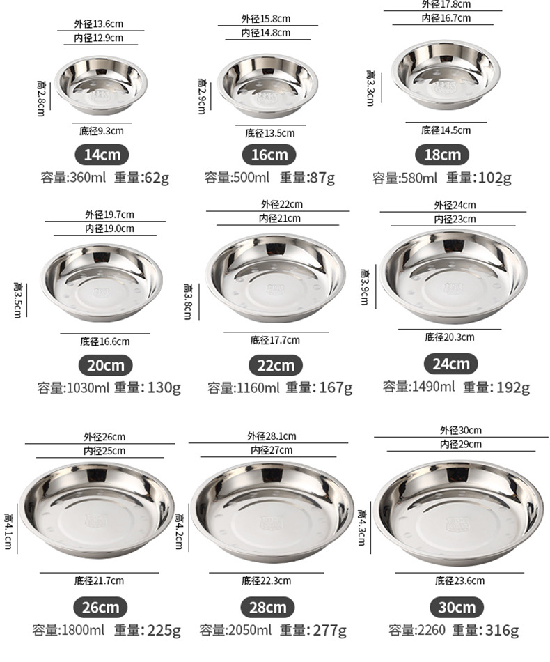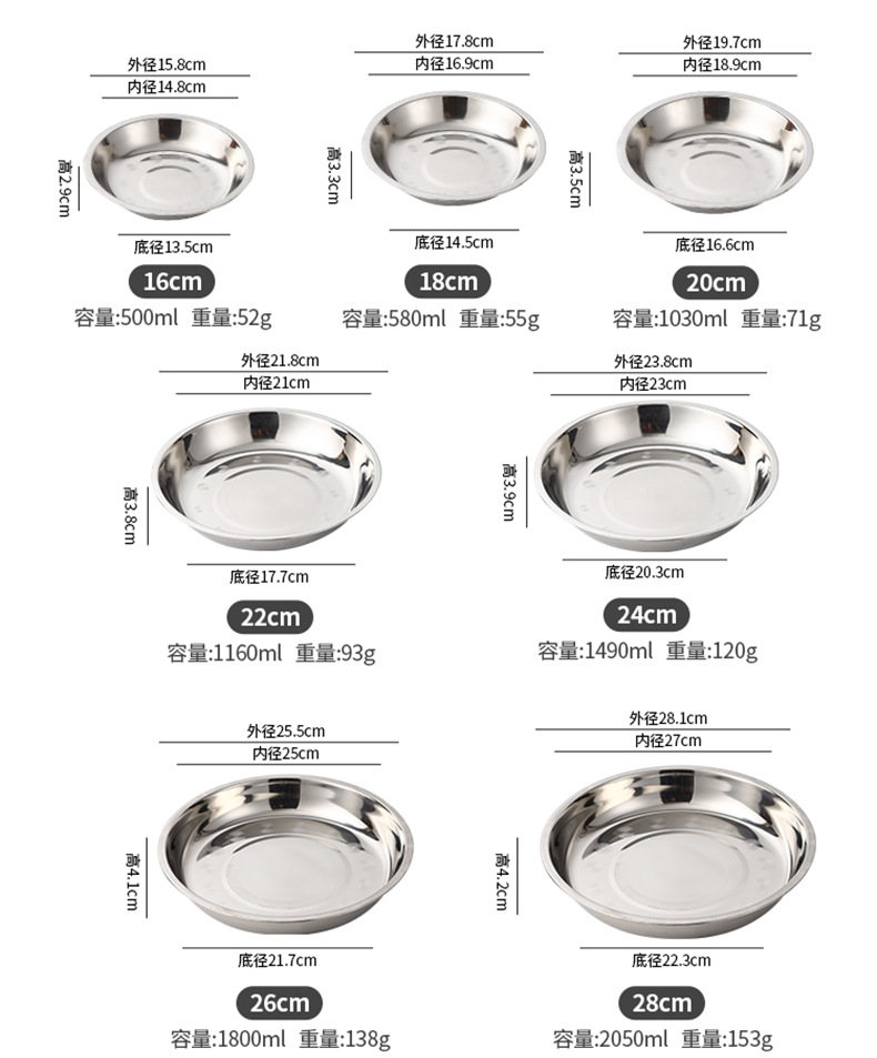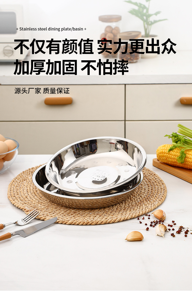 304 두꺼운 스테인레스 깊은 접시 디스크 호텔 매점 접시 가정용 주방 식기 접시 스테인레스 접시 도매스토어 가기