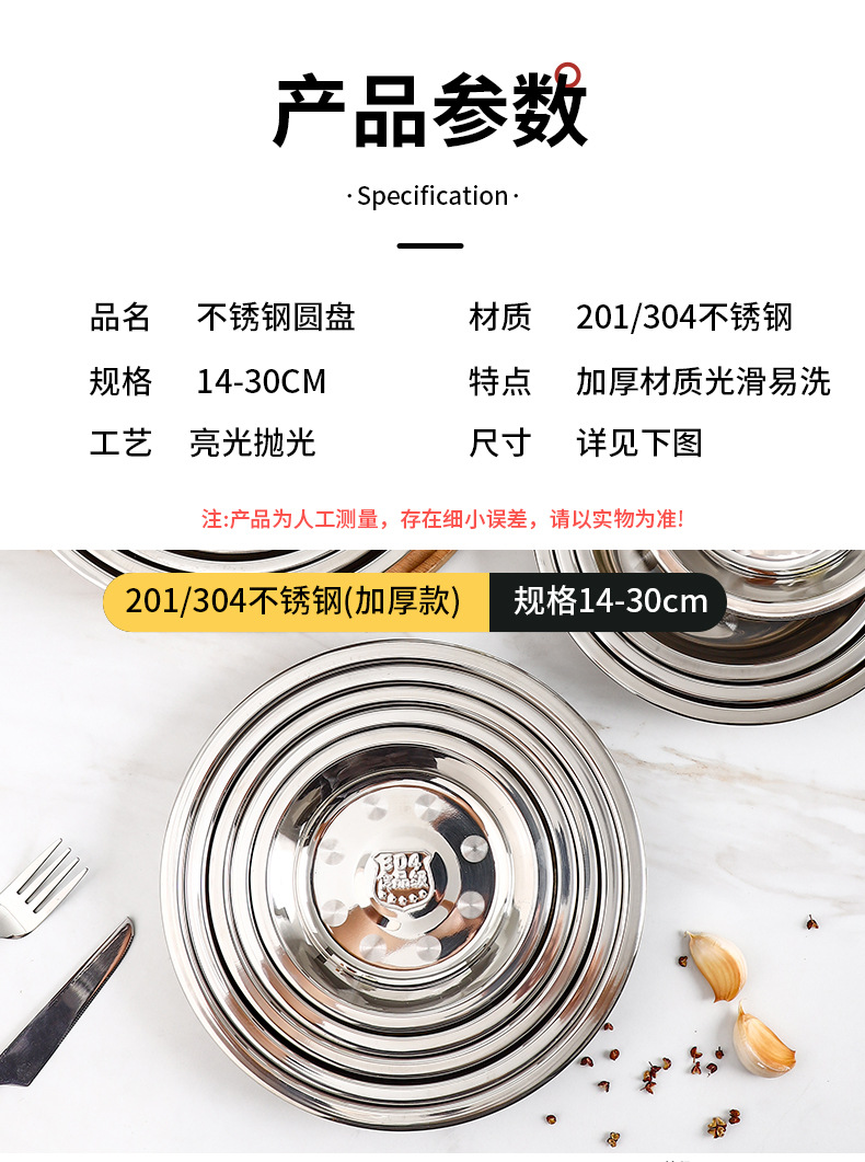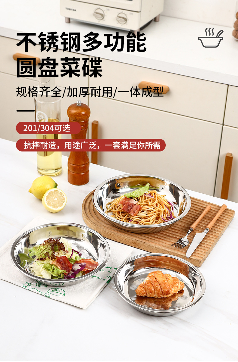304 두꺼운 스테인레스 깊은 접시 디스크 호텔 매점 접시 가정용 주방 식기 접시 스테인레스 접시 도매