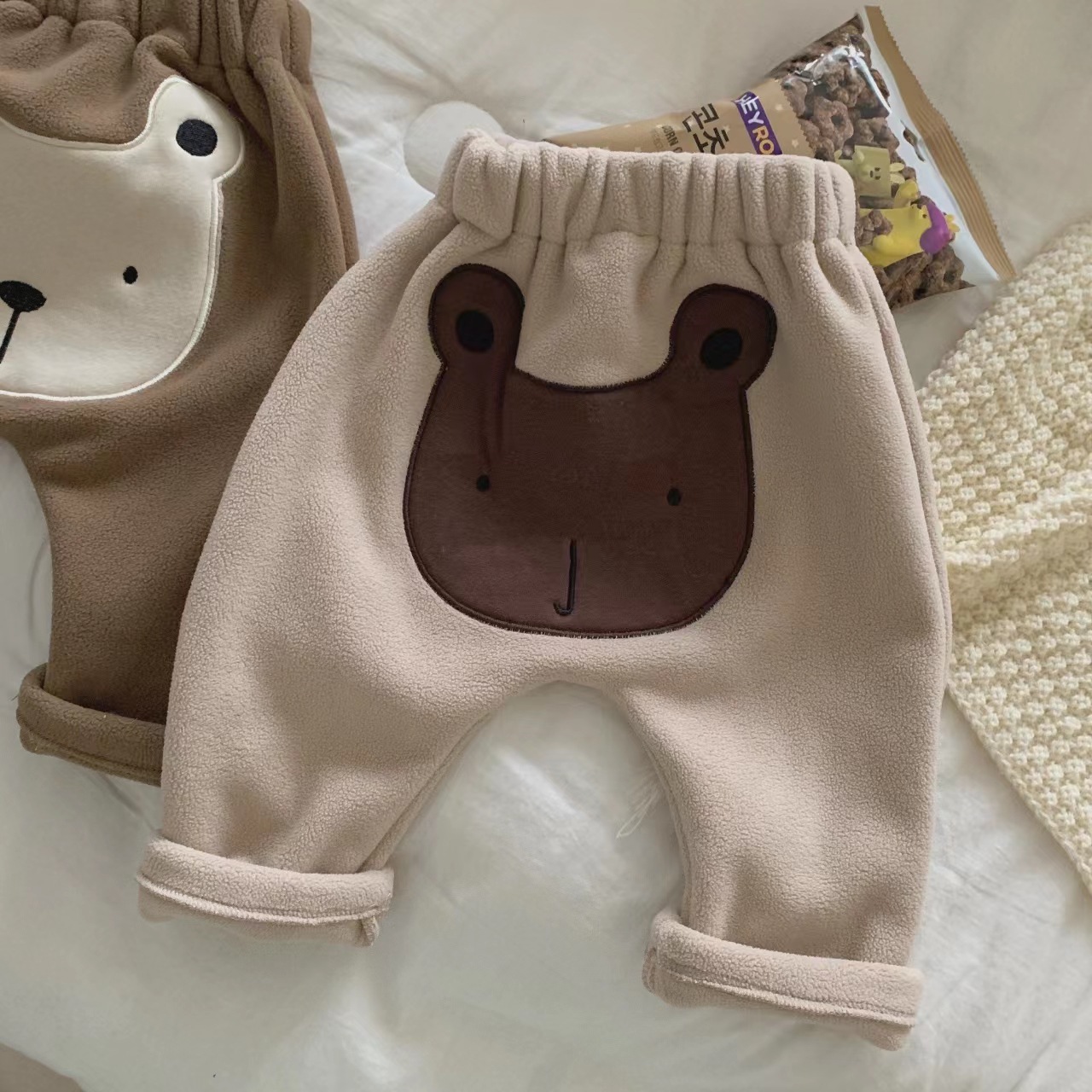 가을과 겨울 아기 큰 PP 바지 기모 따뜻한 바지 겉옷 남자와 여자의 아기 큰 뚱뚱한 바지 한국 하렘 바지