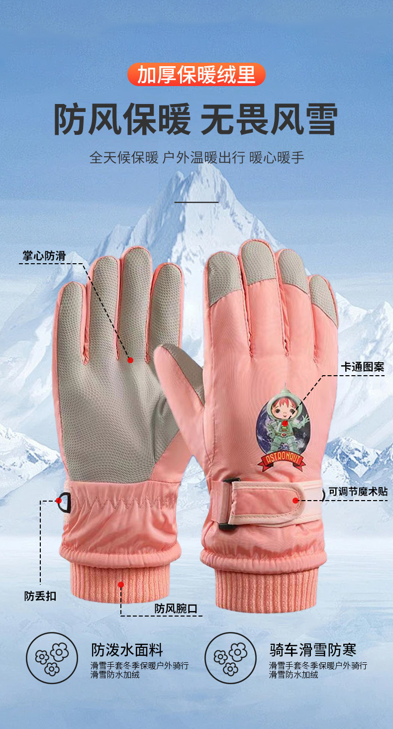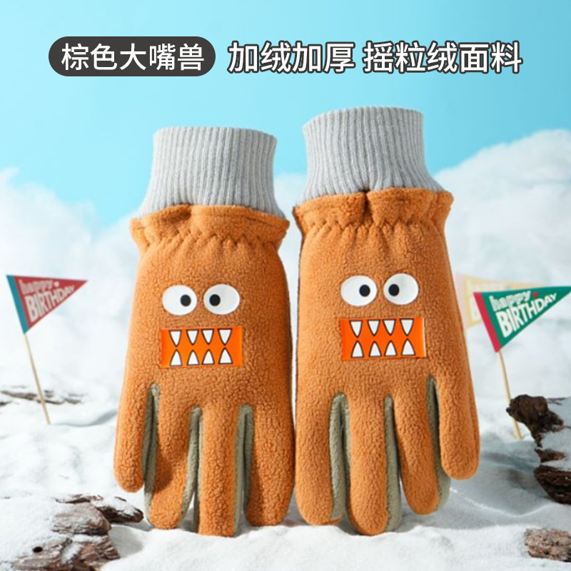 국경을 넘는 어린이용 장갑, 스키 및 사이클링용, 겨울철 남녀 학생용, 만화 캐릭터, 귀엽고 두껍고 벨벳 안감이 있는 가을 겨울용 보온 장갑, 도매스토어 가기