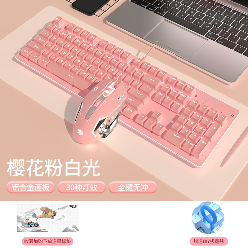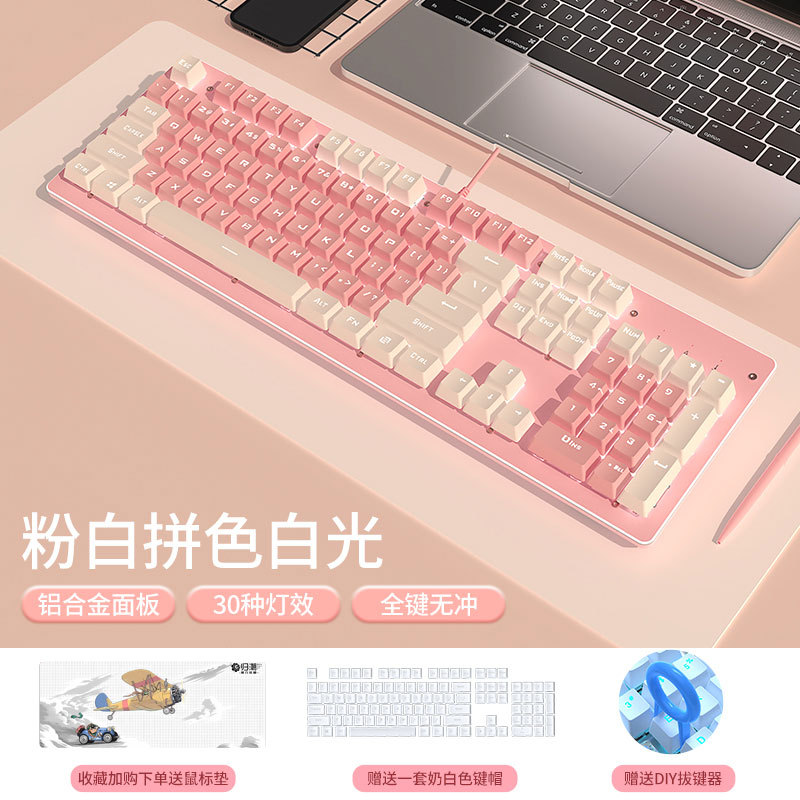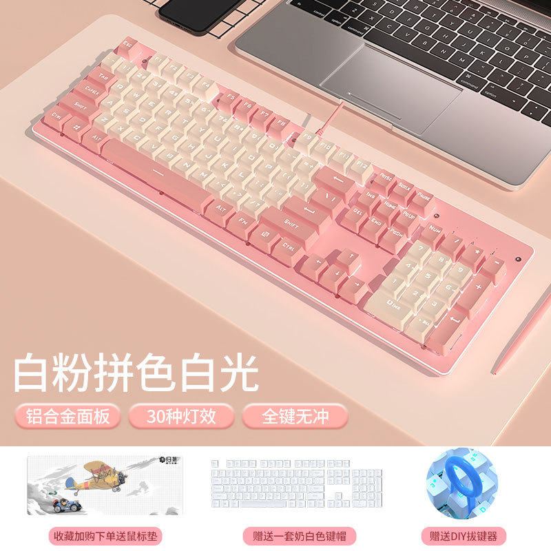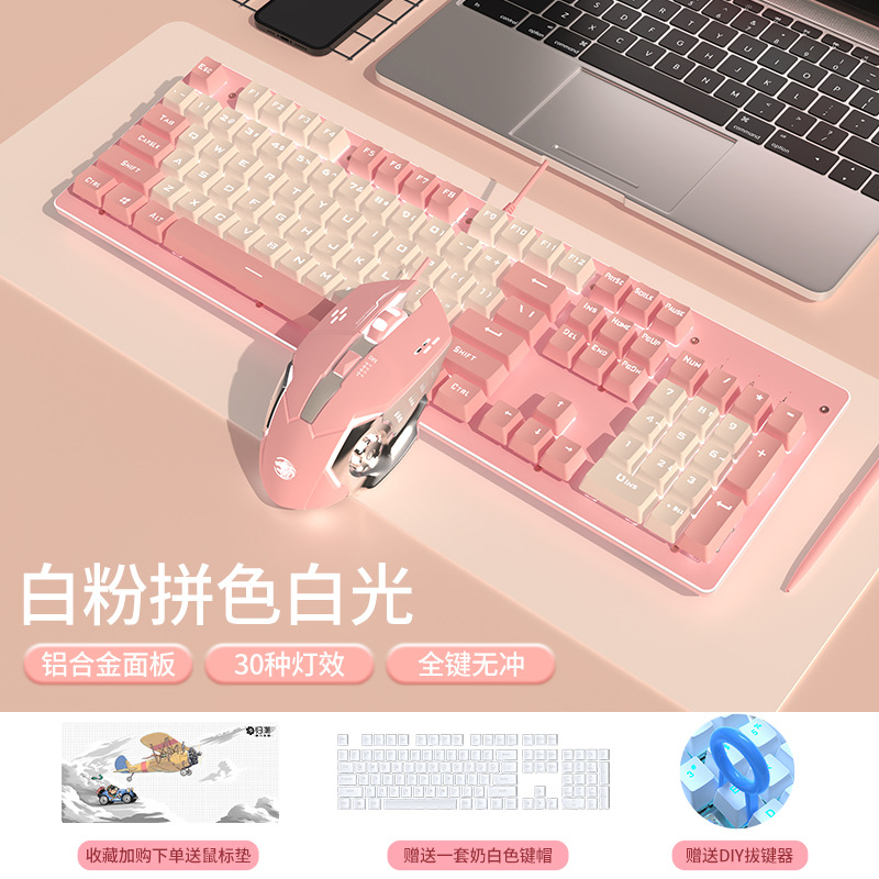 Forerunner 912 기계식 키보드 및 마우스 세트 유선 흰색 분말 더블 오피스 컴퓨터 게임 녹색 축 높은 외관