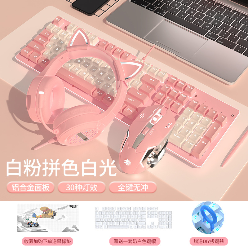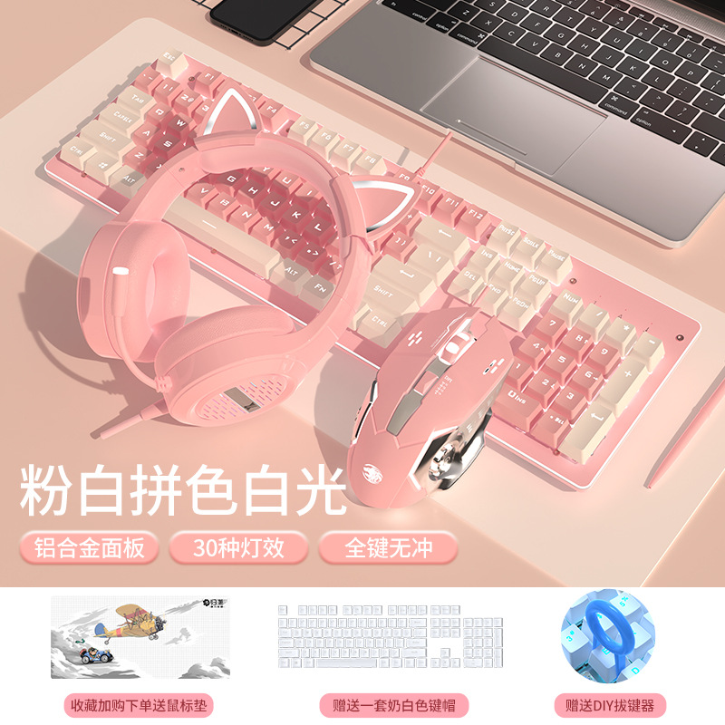 • 핑크 화이트 컬러 매칭 [따뜻한 화이트 라이트] + 마우스 + 헤드셋