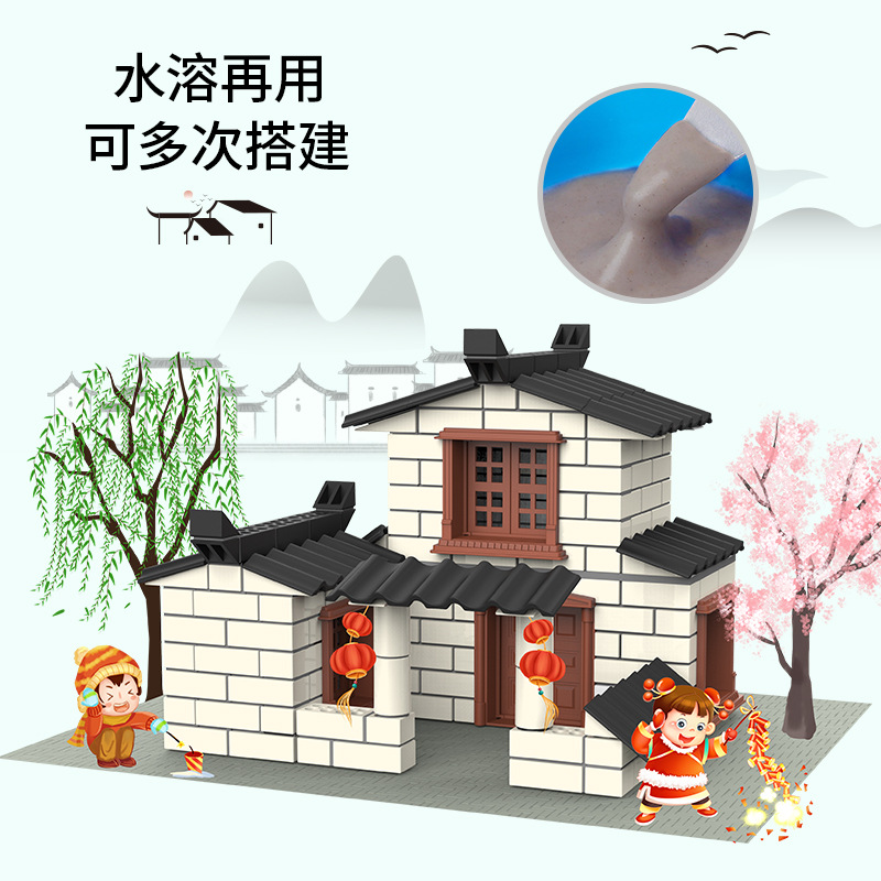고대 건물 석공 수제 DIY 집 건물 중국식 미니 조립 건물 모델 어린이 벽돌 장난감