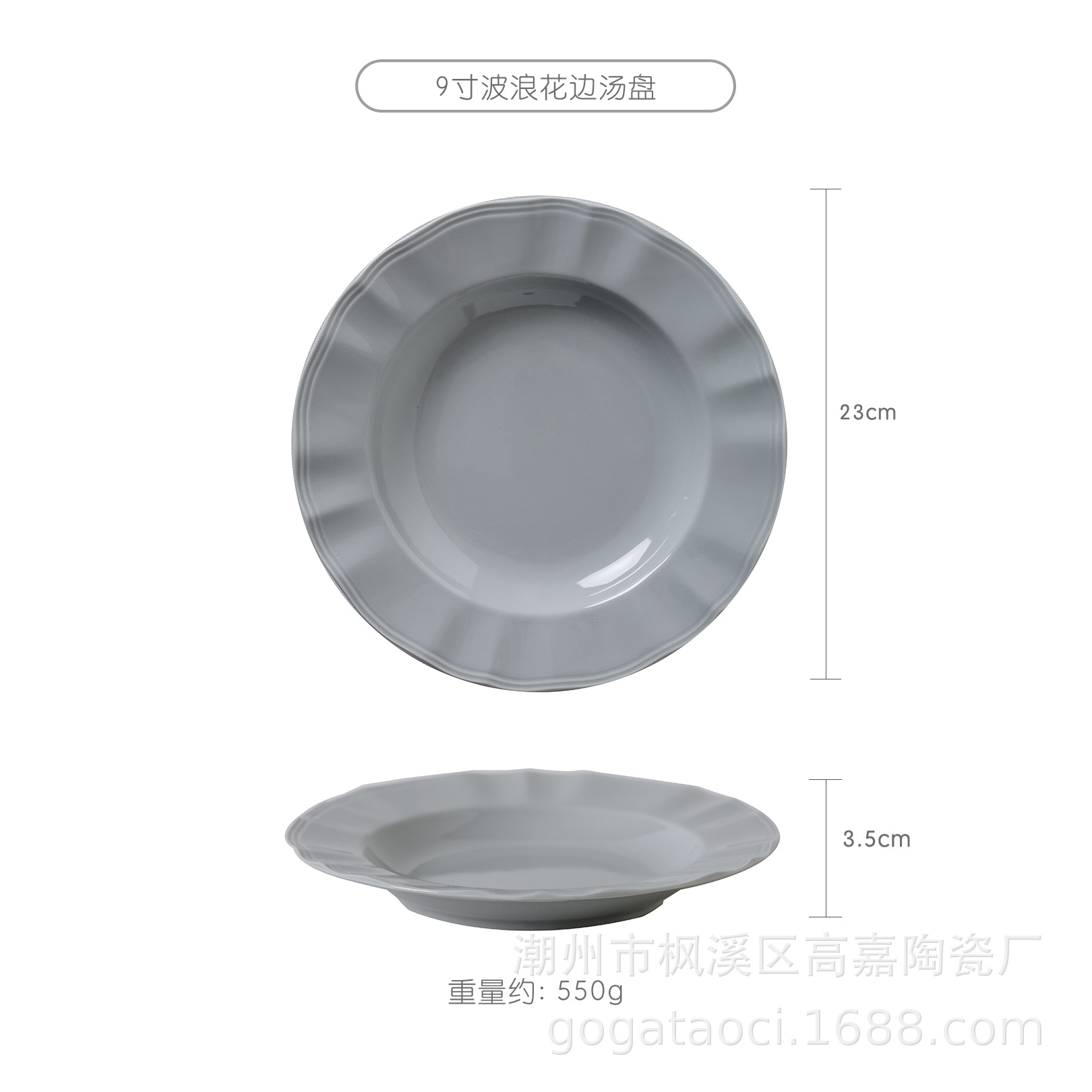 고대 스타일 클래식 디너 플레이트 세라믹 서양 음식 접시 의식 프랑스 가정 얕은 접시 단색 팬케이크 접시