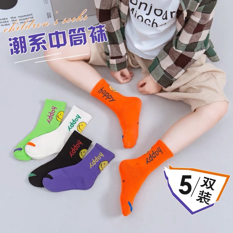 • 행복한 세련된 양말 웃는 얼굴 중간 튜브 5 색상 일치