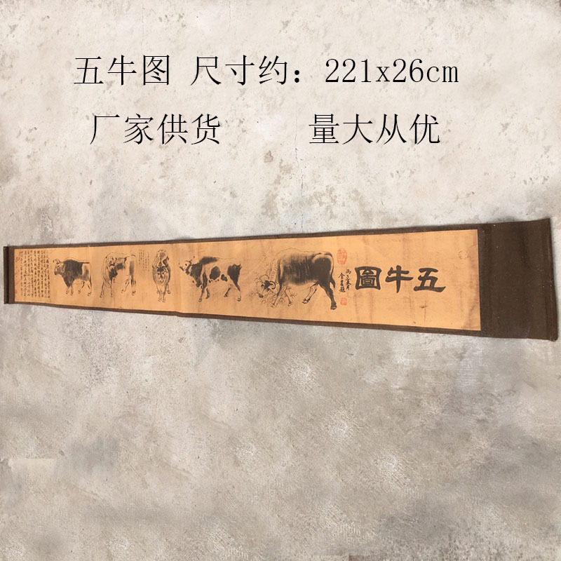 • 소 5 마리 그림 약: 221*26cm