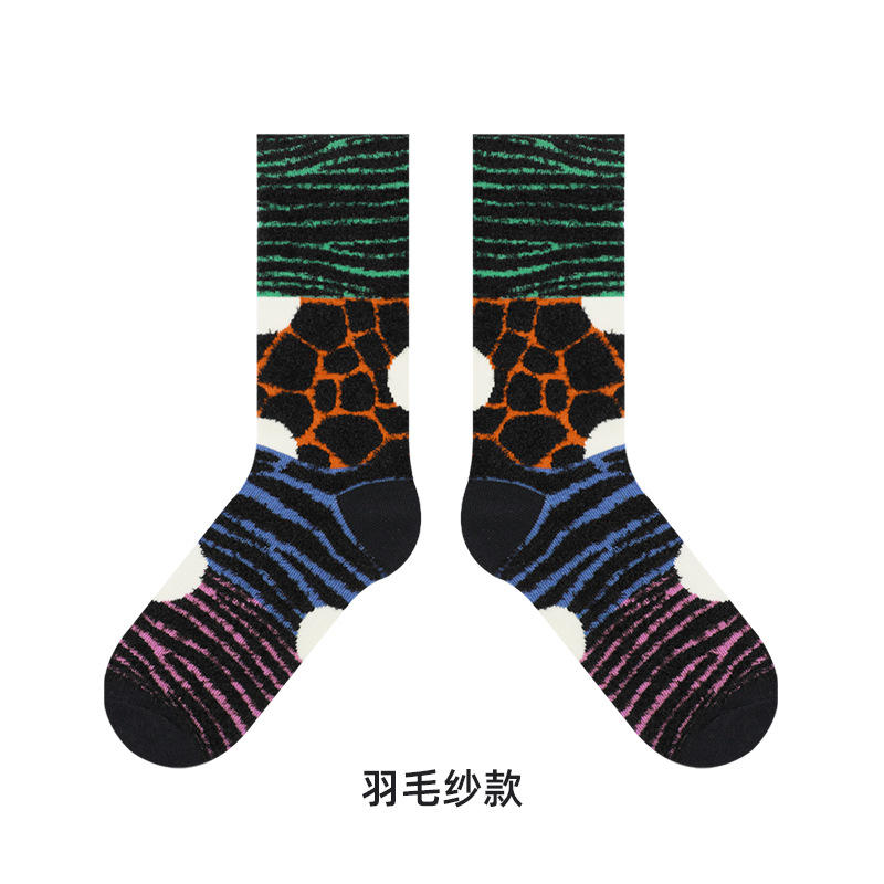 봄과 가을 새로운 표범 인쇄 패션 양말 여성 야외 미끄럼 방지 냄새 방지 다채로운 유행 양말 여성 중반 송아지 송아지 양말