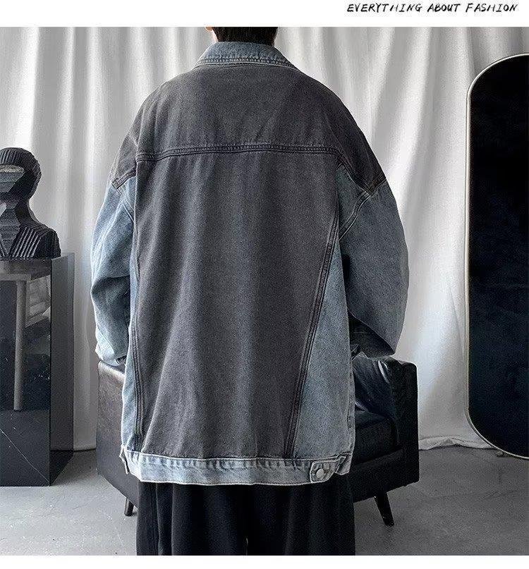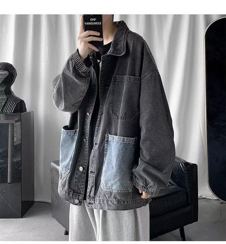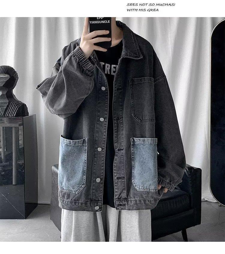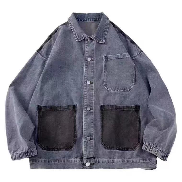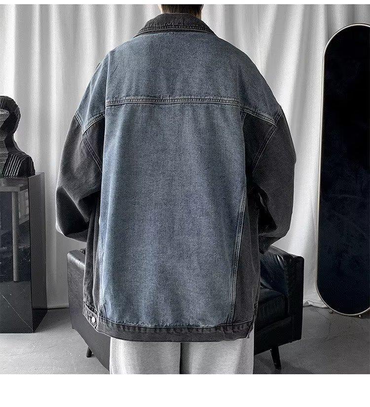 拼接牛仔夹克男潮牌宽松ins帅气复古情侣上衣春秋水洗工装外套男