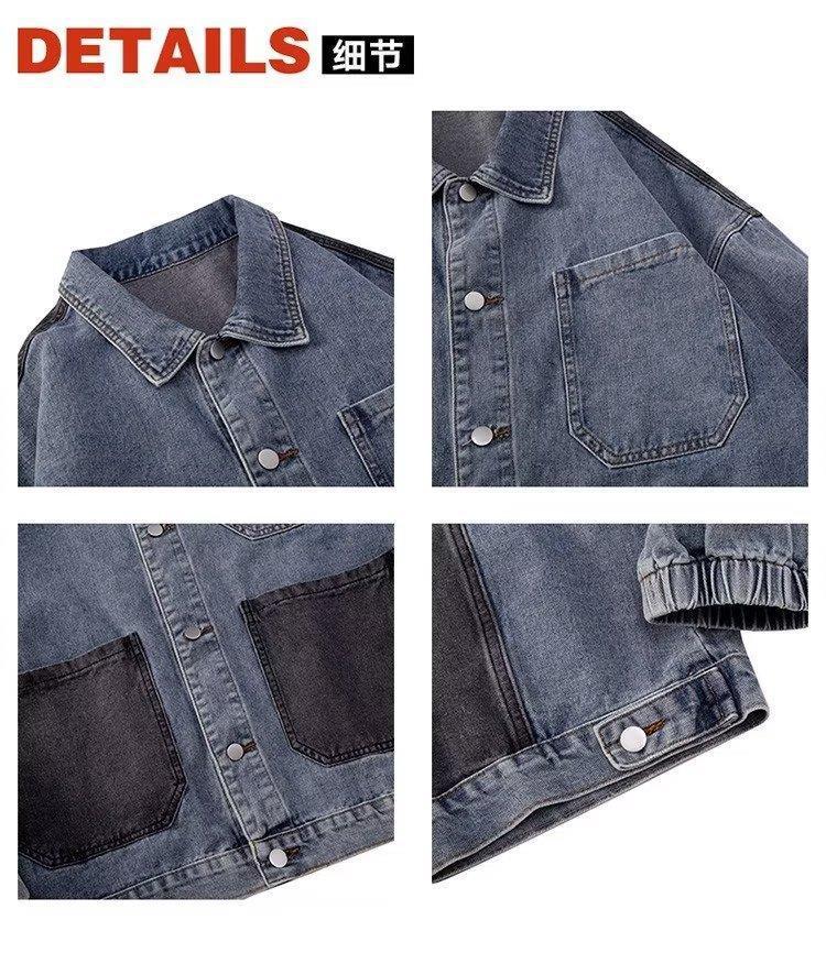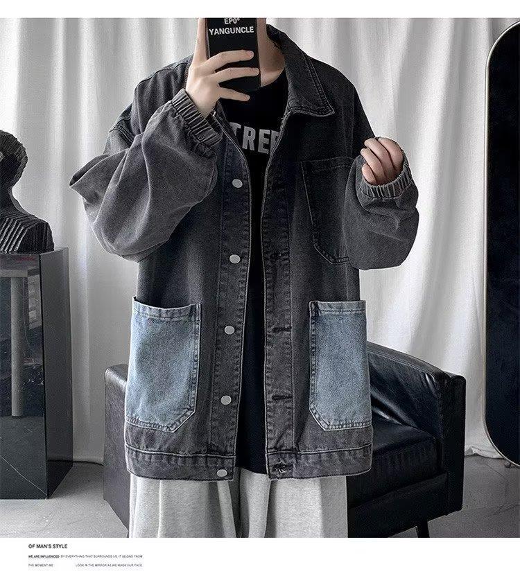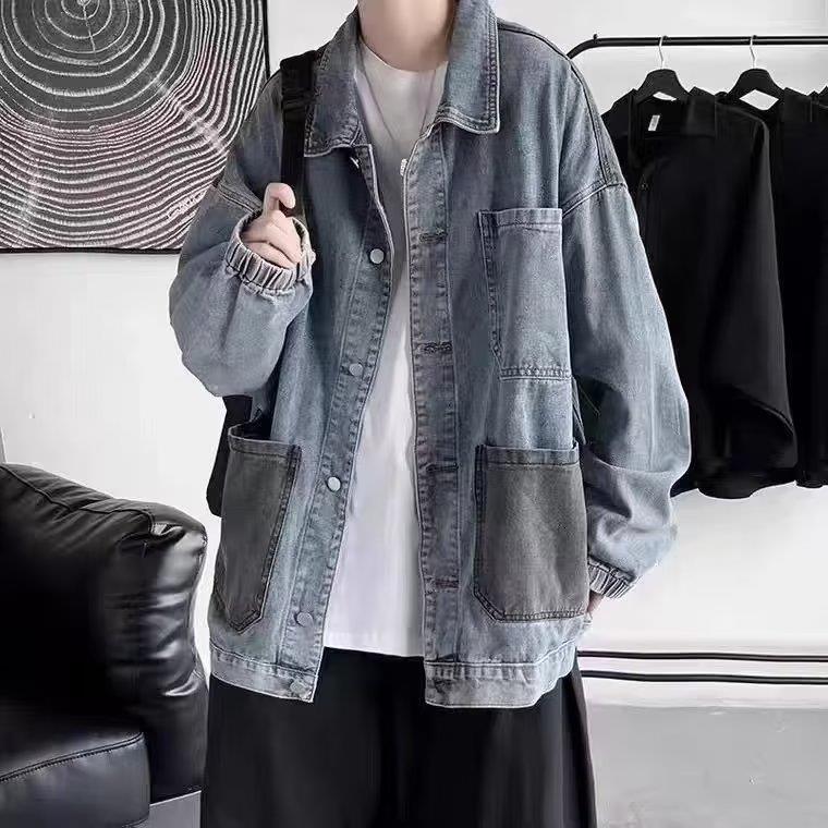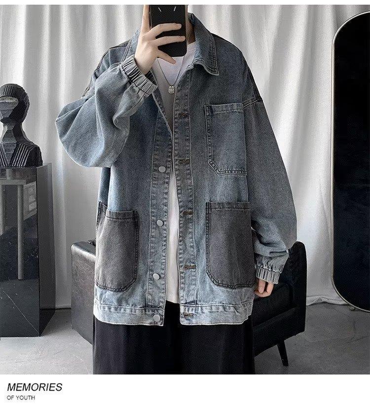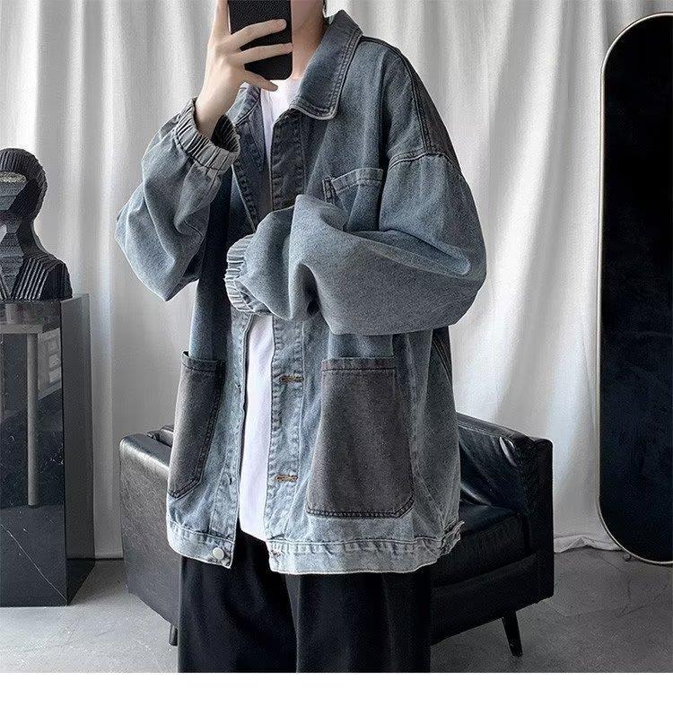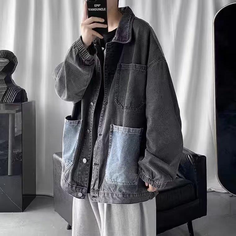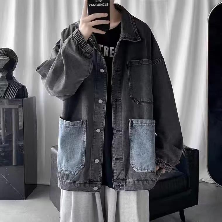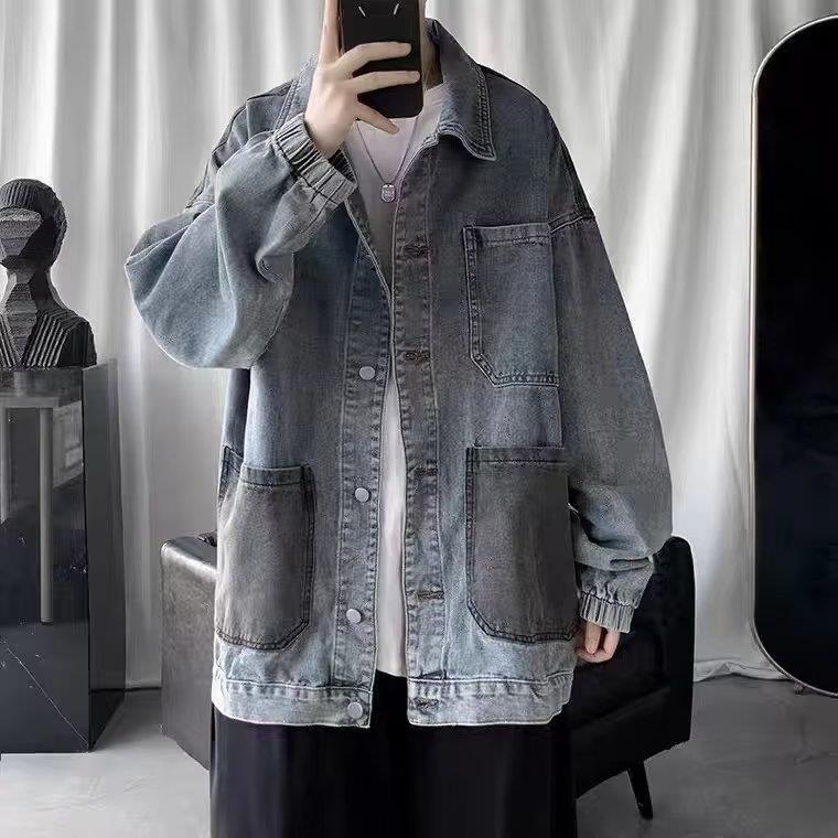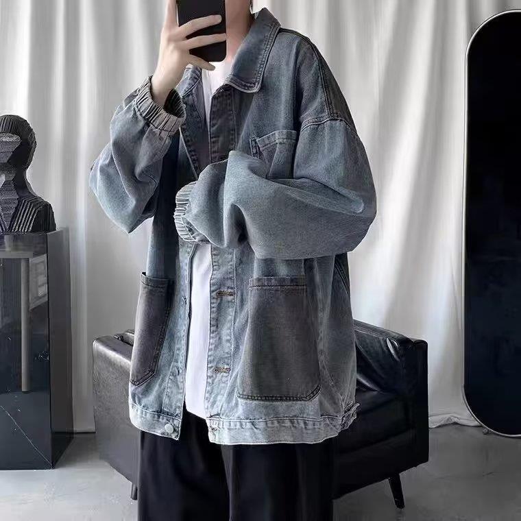 스티칭 데님 재킷 남자의 유행 브랜드 잘 생긴 복고풍 커플의 최고 봄과 가을 워싱 바지 남성 코트에 느슨한스토어 가기