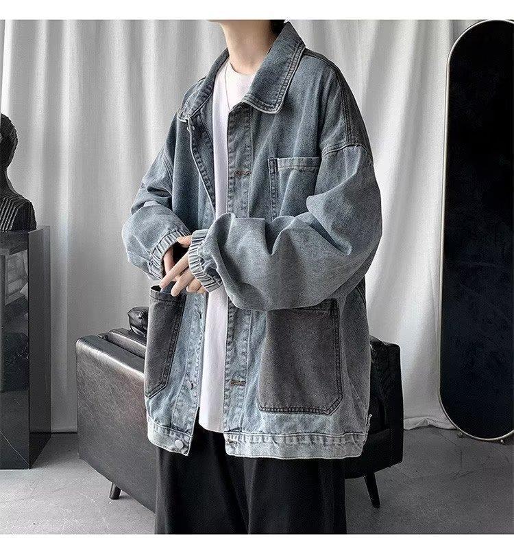 스티칭 데님 재킷 남자의 유행 브랜드 잘 생긴 복고풍 커플의 최고 봄과 가을 워싱 바지 남성 코트에 느슨한