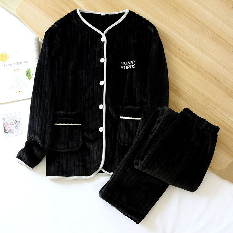 커플 잠옷 여성의 겨울 플란넬이 두껍게 기모 긴팔 바지 홈 느슨한 산호 양털 남성 세트 착용스토어 가기