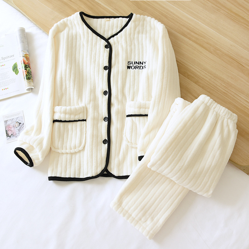 • 플란넬 옷깃 세트 여성 흰색 LH