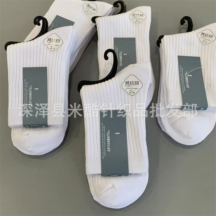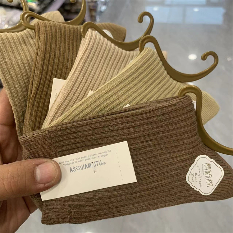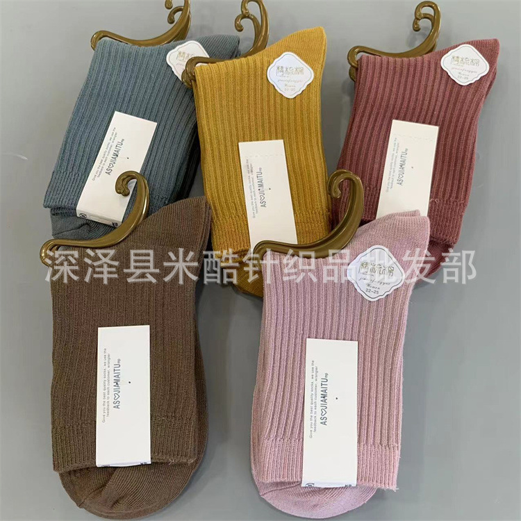 가을과 겨울 남성과 여성을위한 새로운 두꺼운 따뜻한 모조 이중 바늘 튜브 양말 캐주얼 단색 성인면 양말 도매 실행스토어 가기