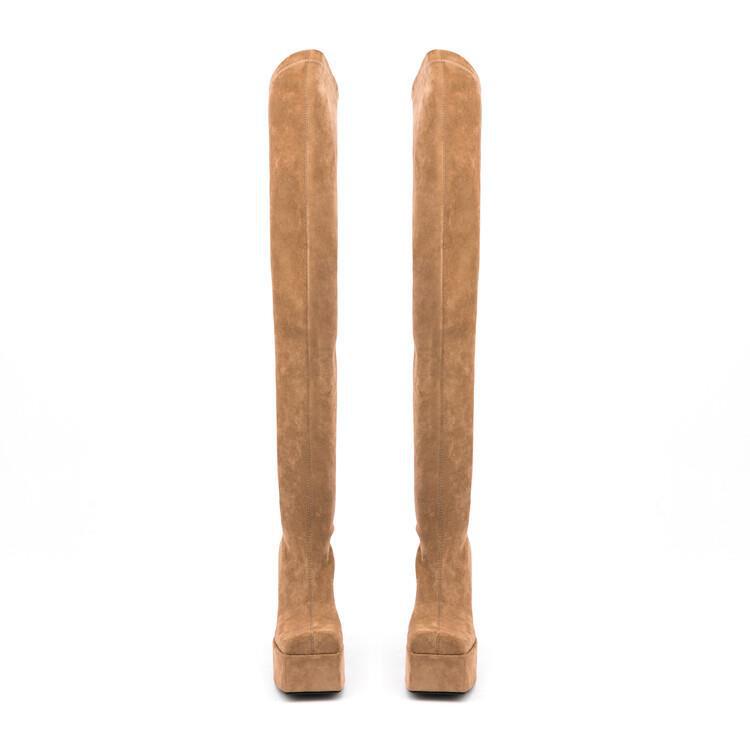 2022 여름 새로운 두꺼운 굽 모양의 뒤꿈치 하이힐 무릎 위 부츠 스트레치 부츠 패션 여성 부츠 플러스 사이즈 41