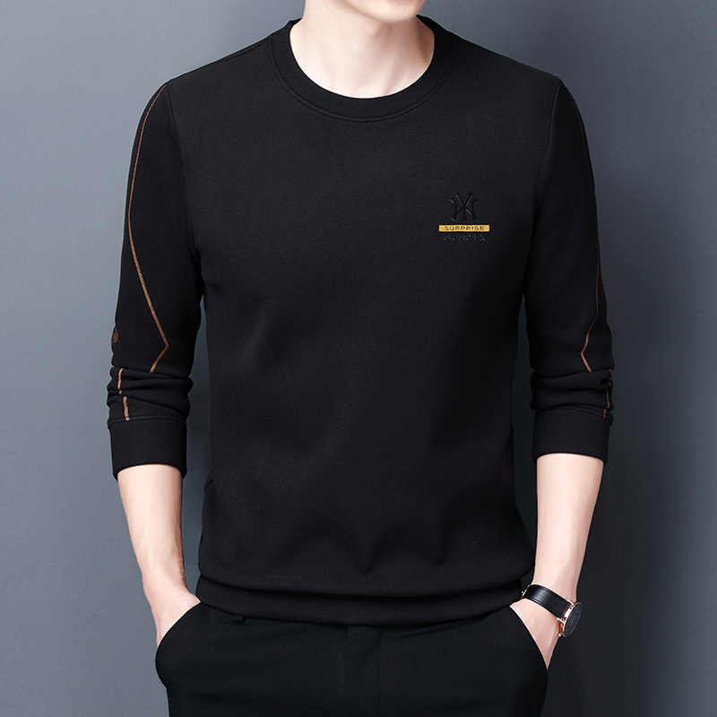 2022 가을 새로운 양면 벨벳 남성용 라운드 넥 스웨터 단색 편지 인쇄 캐주얼 긴 소매 기본 셔츠