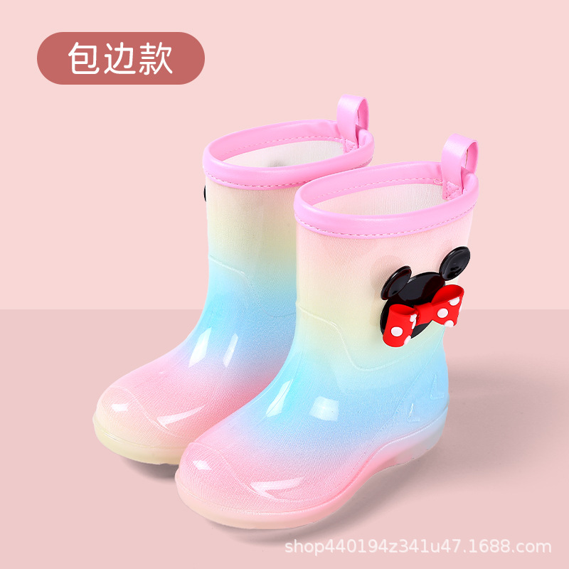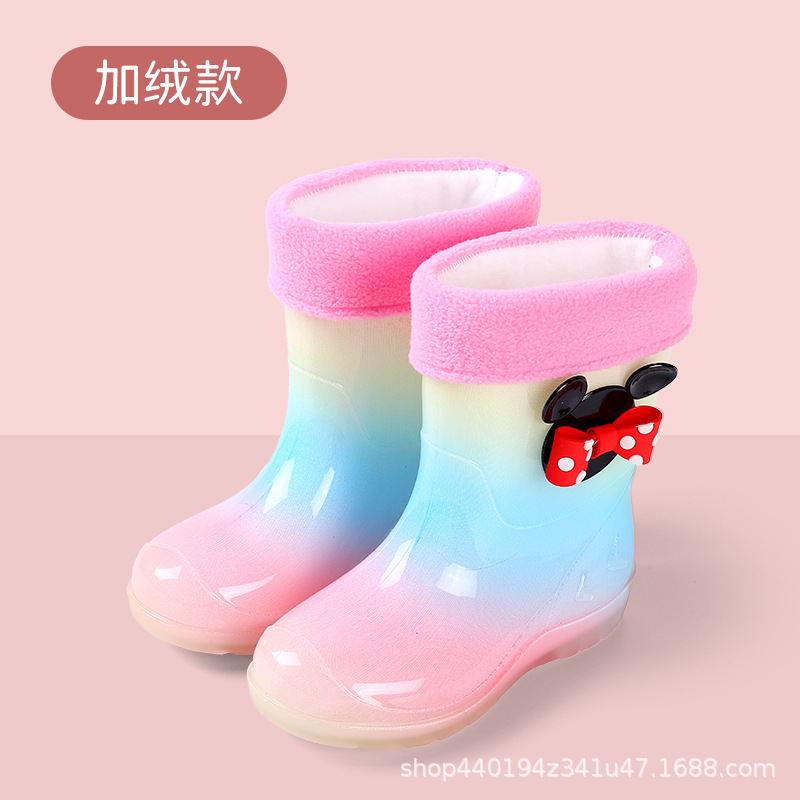 어린이 장화 공주 소녀 유치원 아기 미끄럼 방지 장화 물 장화 기모 아이 물 장화 귀여운 무지개