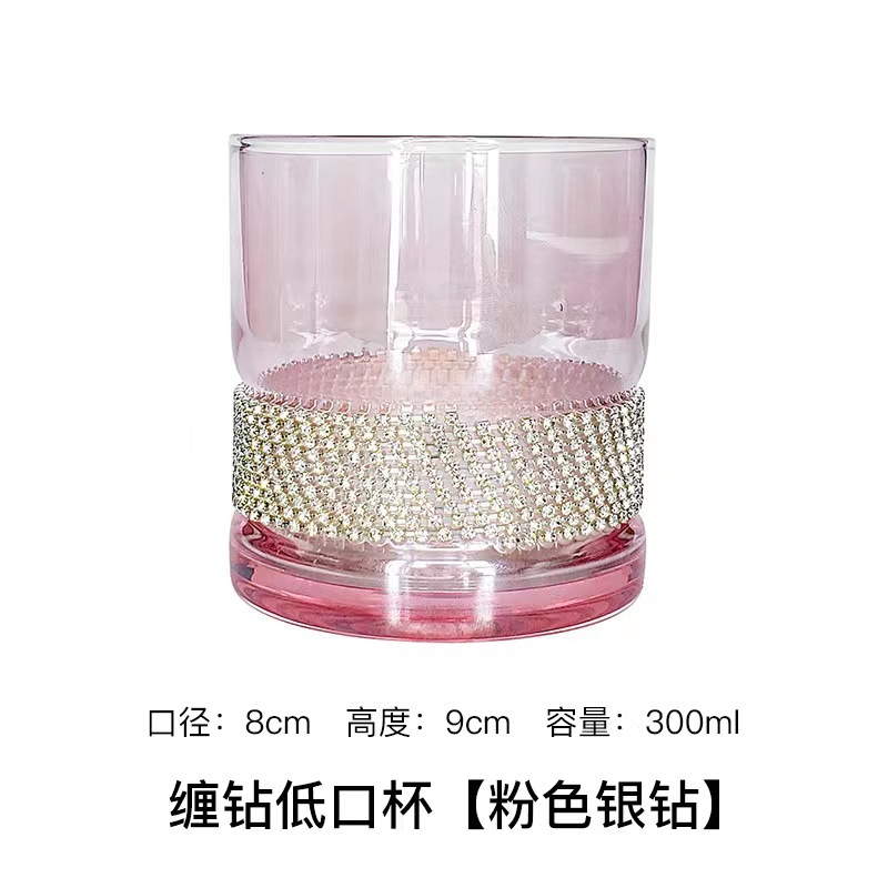 • 랩 드릴 로우 입 컵 [핑크 실버 다이아몬드]