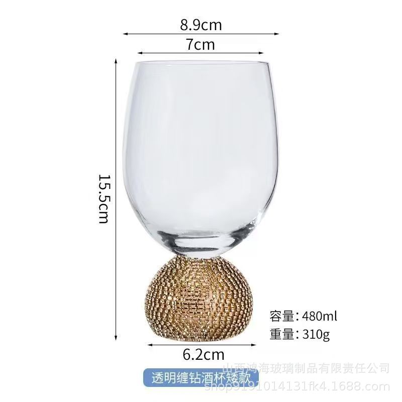 • 투명한 골드 다이아몬드 레드 와인 잔