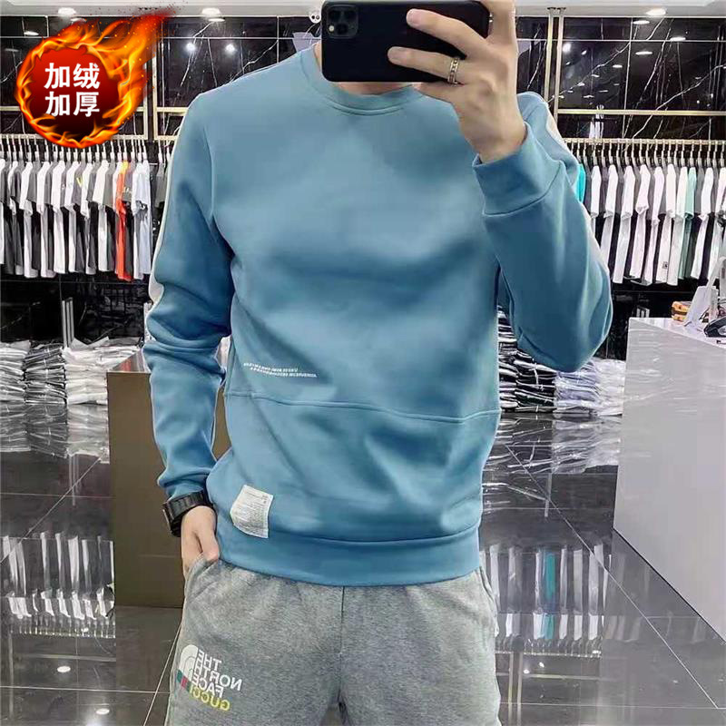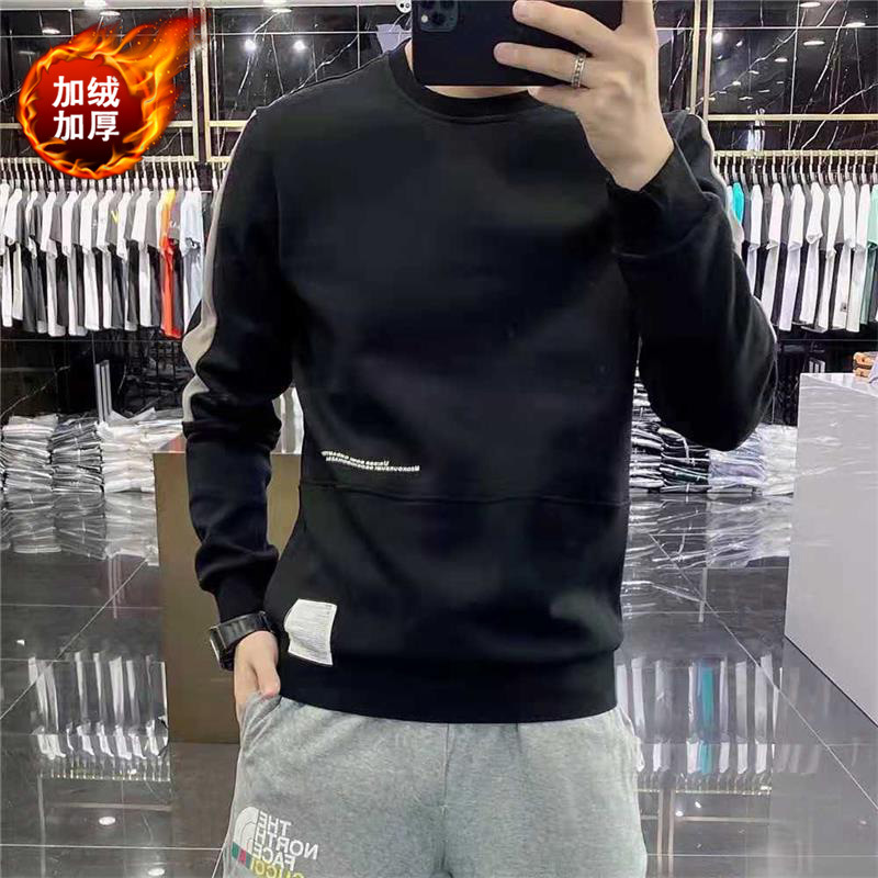 유럽 역 가을과 겨울 땀 남성 트렌디 쿨 간단한 라운드 넥 탑 남성 패션 캐주얼 슬림 긴 소매 티셔츠스토어 가기
