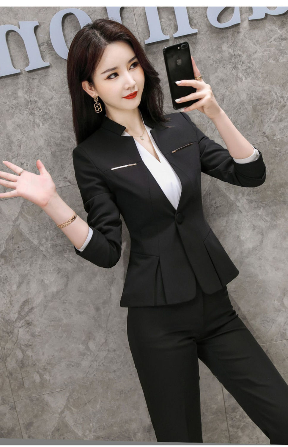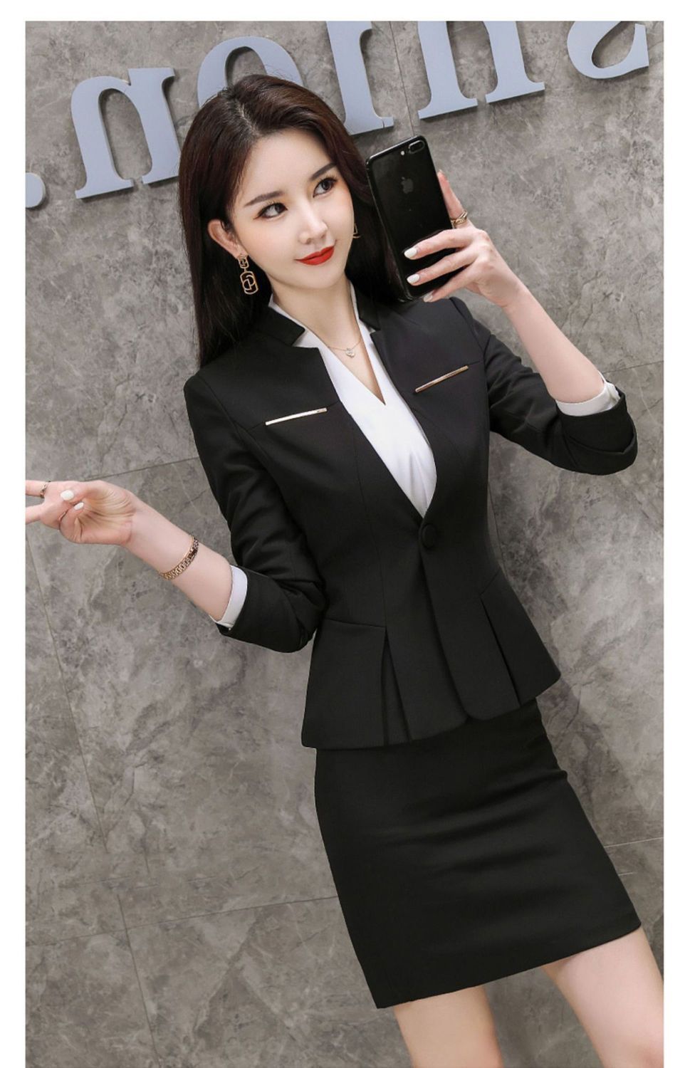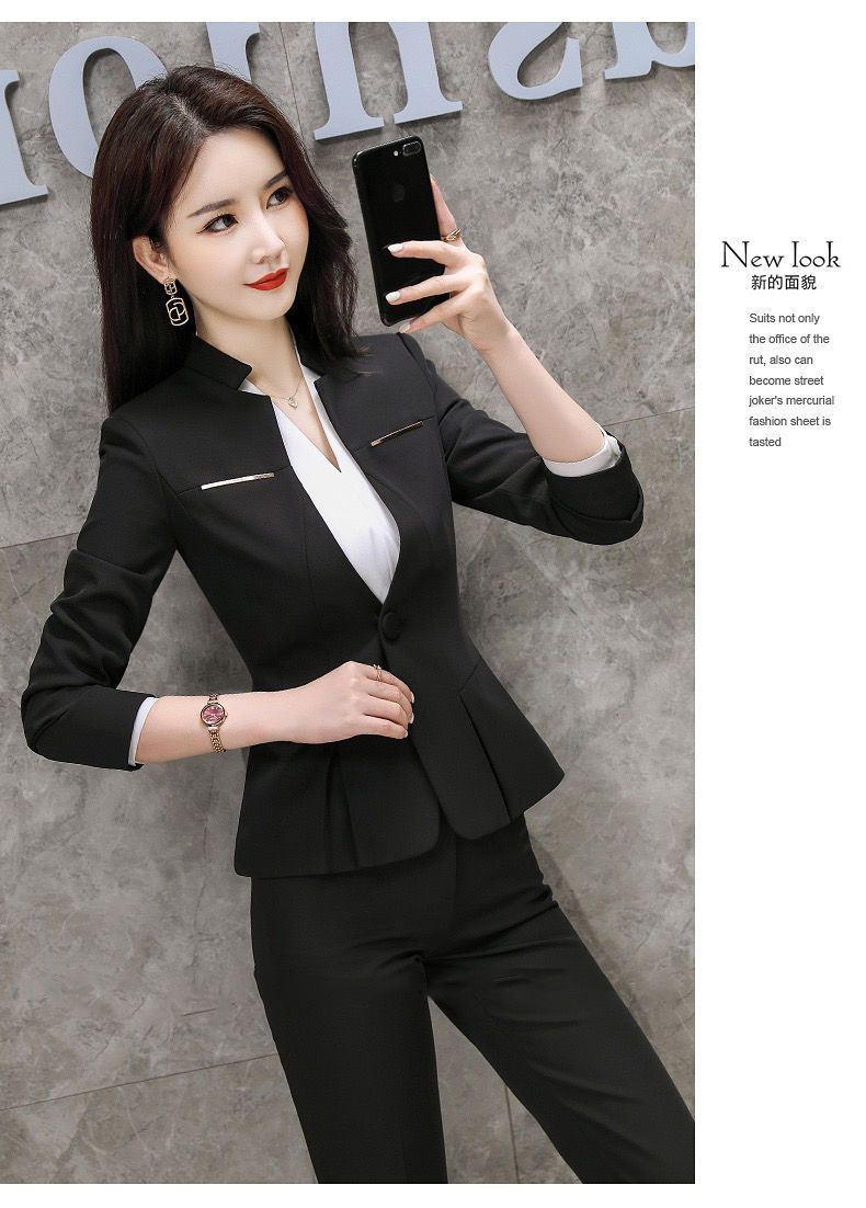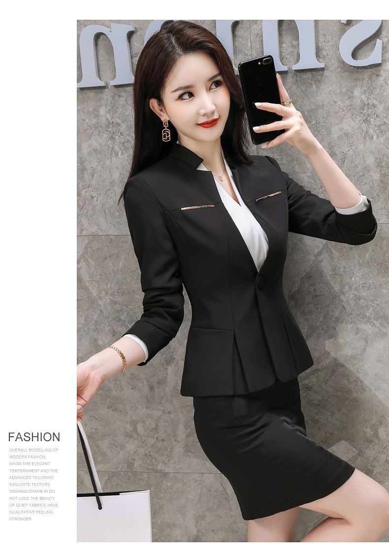 여성용 정장 재킷, 전문적인 검은색 작은 정장 상의, 대학생 스타일 작업복, 정장 정장스토어 가기