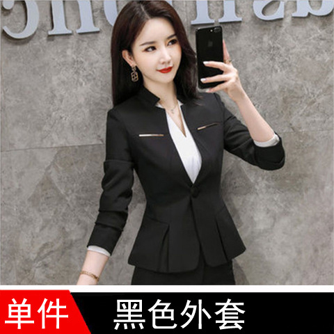 여성용 정장 재킷, 전문적인 검은색 작은 정장 상의, 대학생 스타일 작업복, 정장 정장