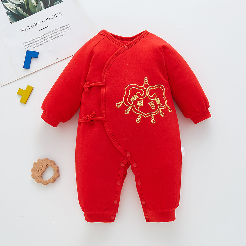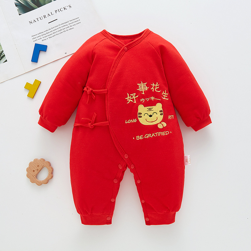 아기 점프 슈트 겨울 옷 클립 면 패딩 재킷 레드 중국 새해 옷 두꺼운 따뜻한 신생아 옷 보름달 아기 호랑이 년
