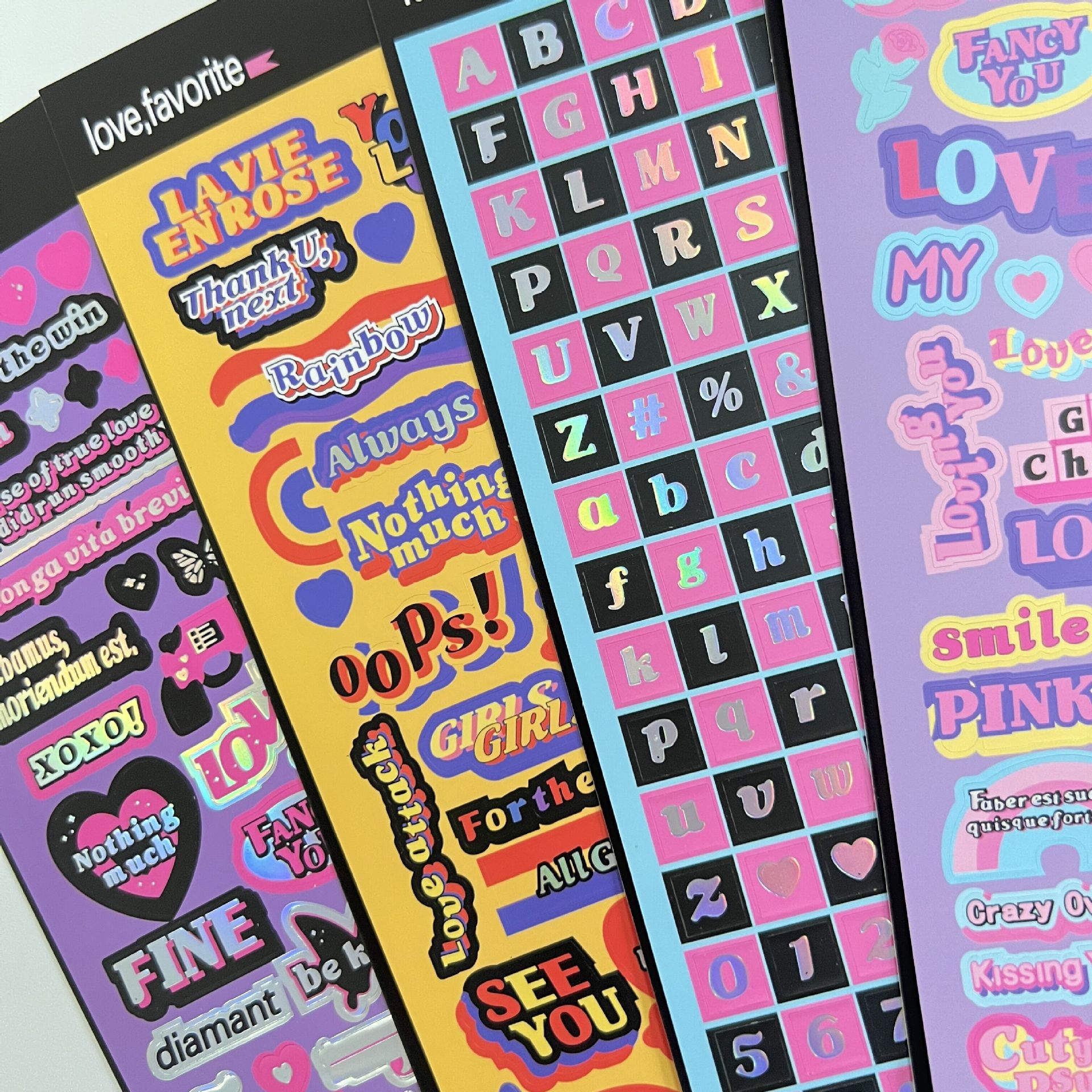 한 Xuan 퍼플 컬러 국립 에서 뜨거운 실버 텍스트 소재 스티커 복고풍 영어 편지 장식 goo 카드 손 계정 스티커스토어 가기