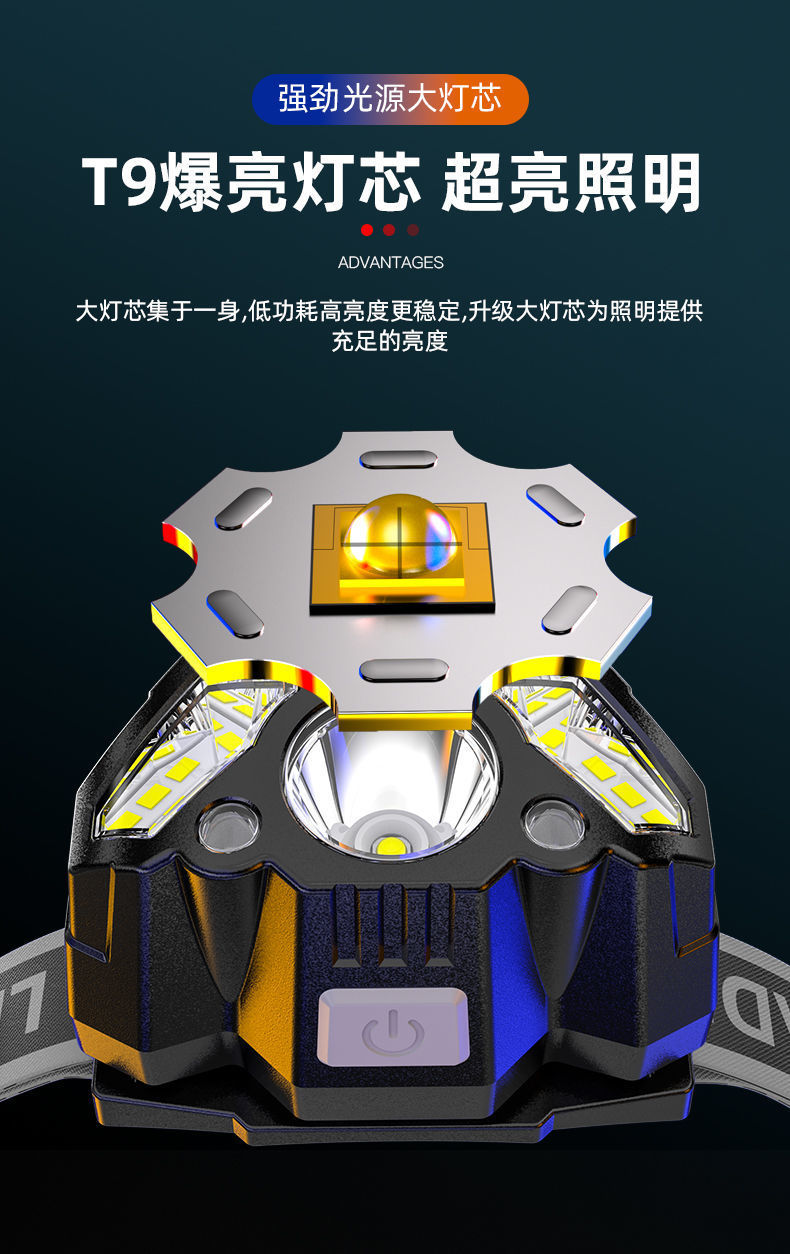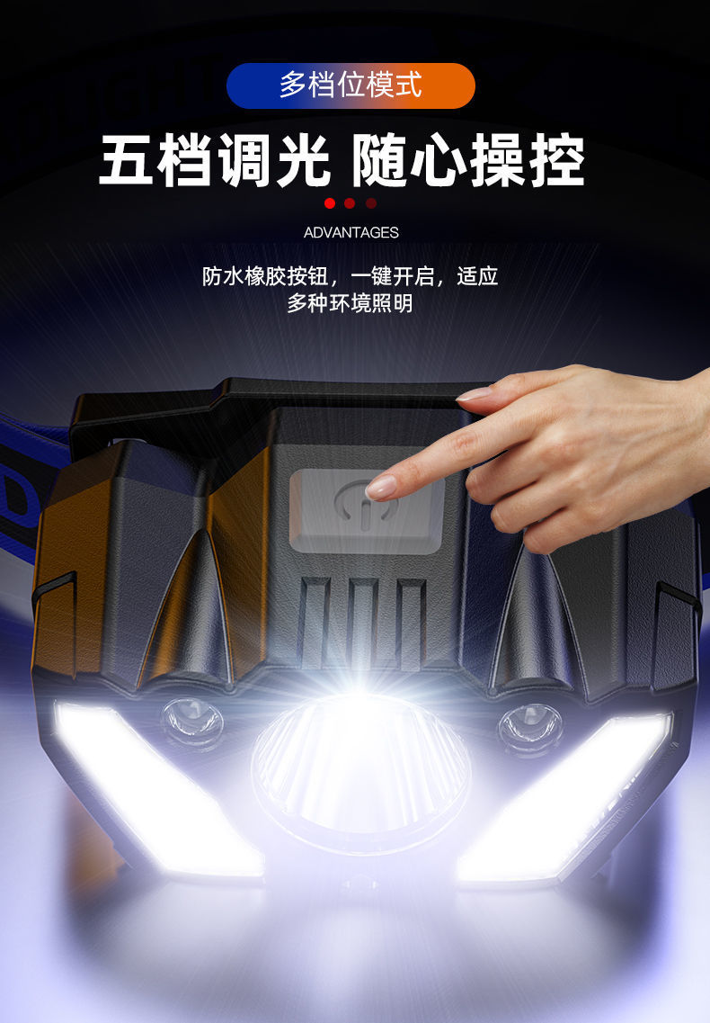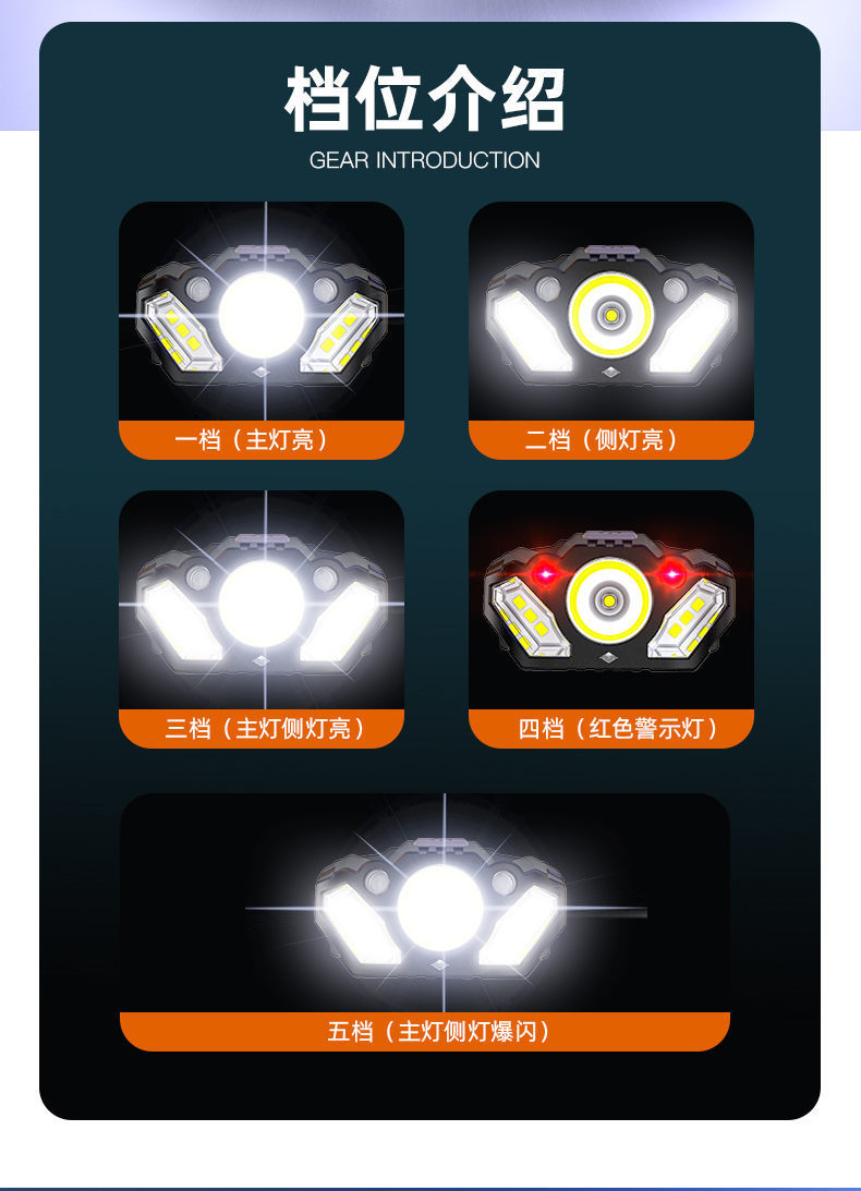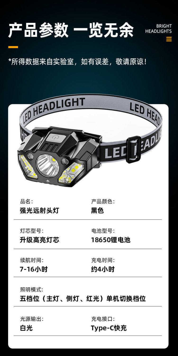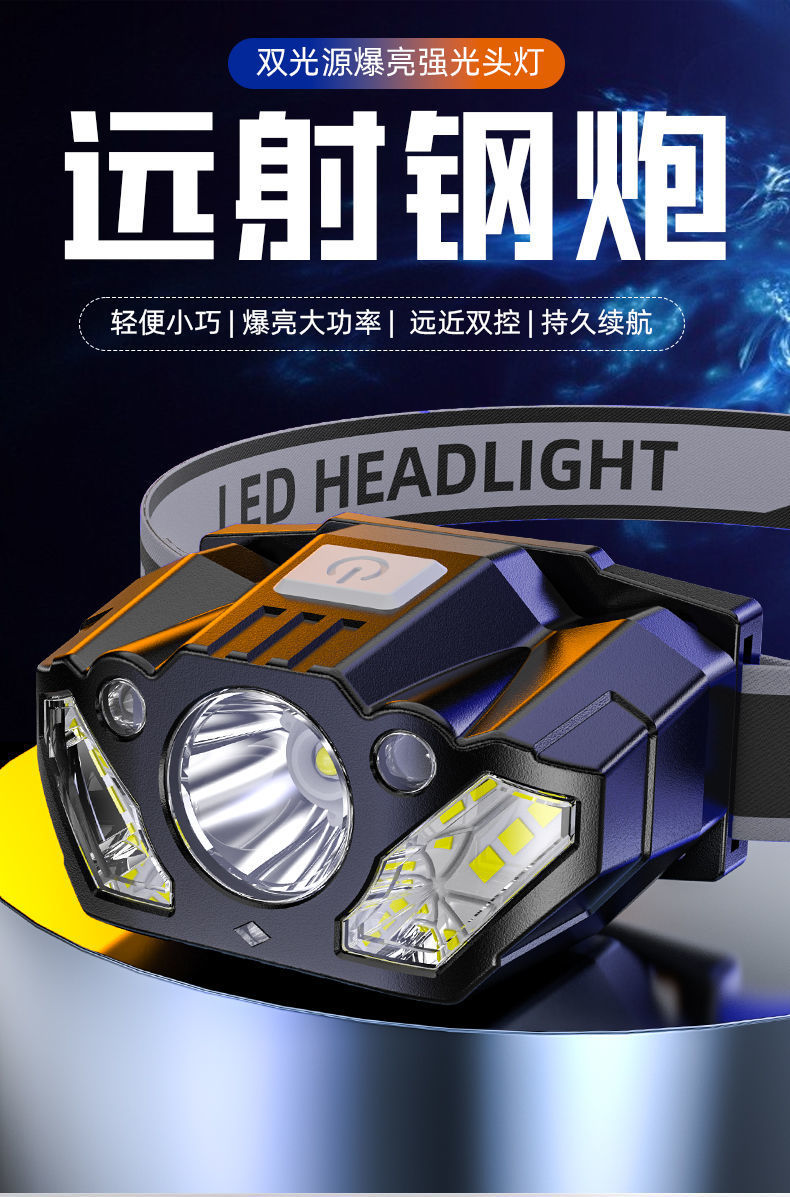 LED 흔들기 유도 전조등 슈퍼 브라이트 슈퍼 롱 배터리 수명 USB 충전식 헤드 마운트 야외 낚시 헤드 라이트
