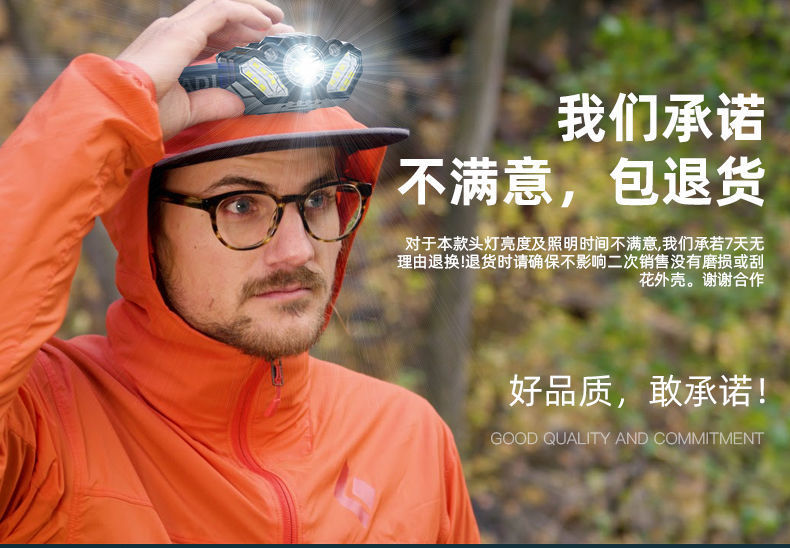 LED 흔들기 유도 전조등 슈퍼 브라이트 슈퍼 롱 배터리 수명 USB 충전식 헤드 마운트 야외 낚시 헤드 라이트스토어 가기