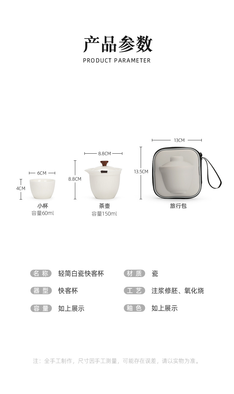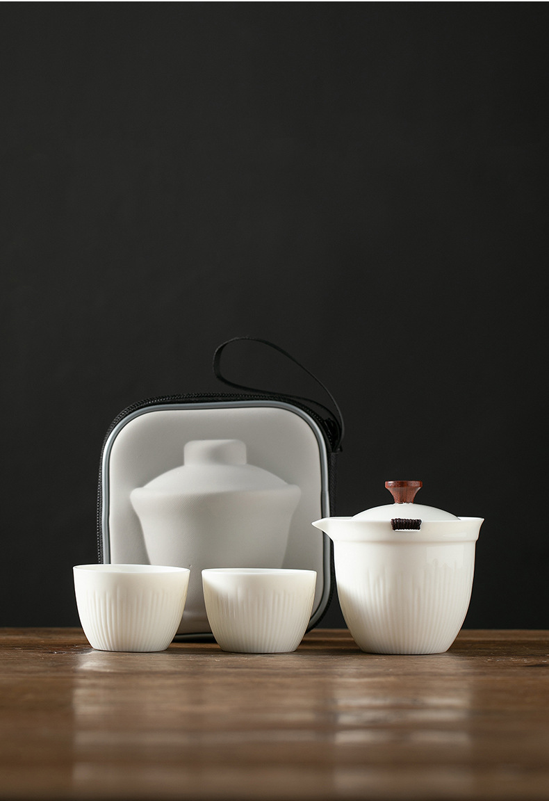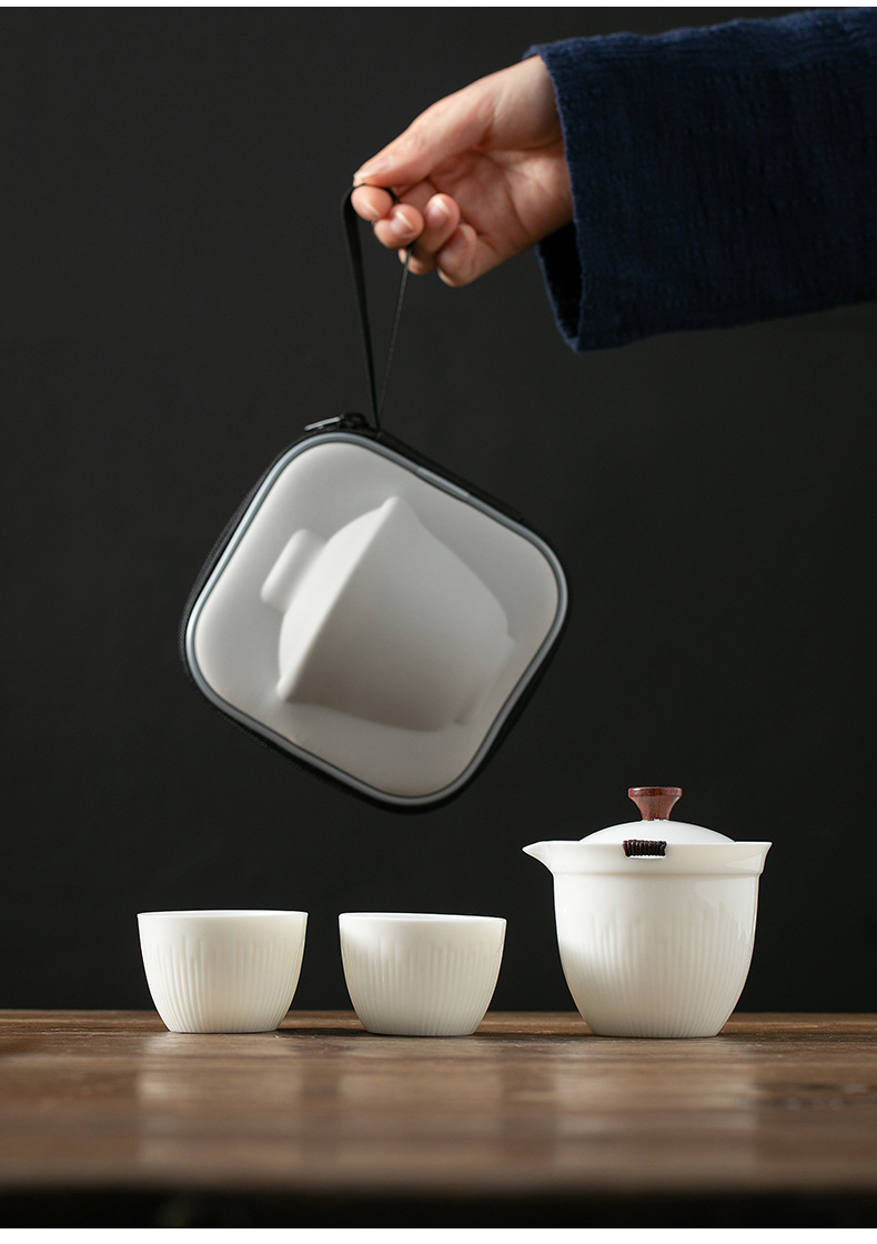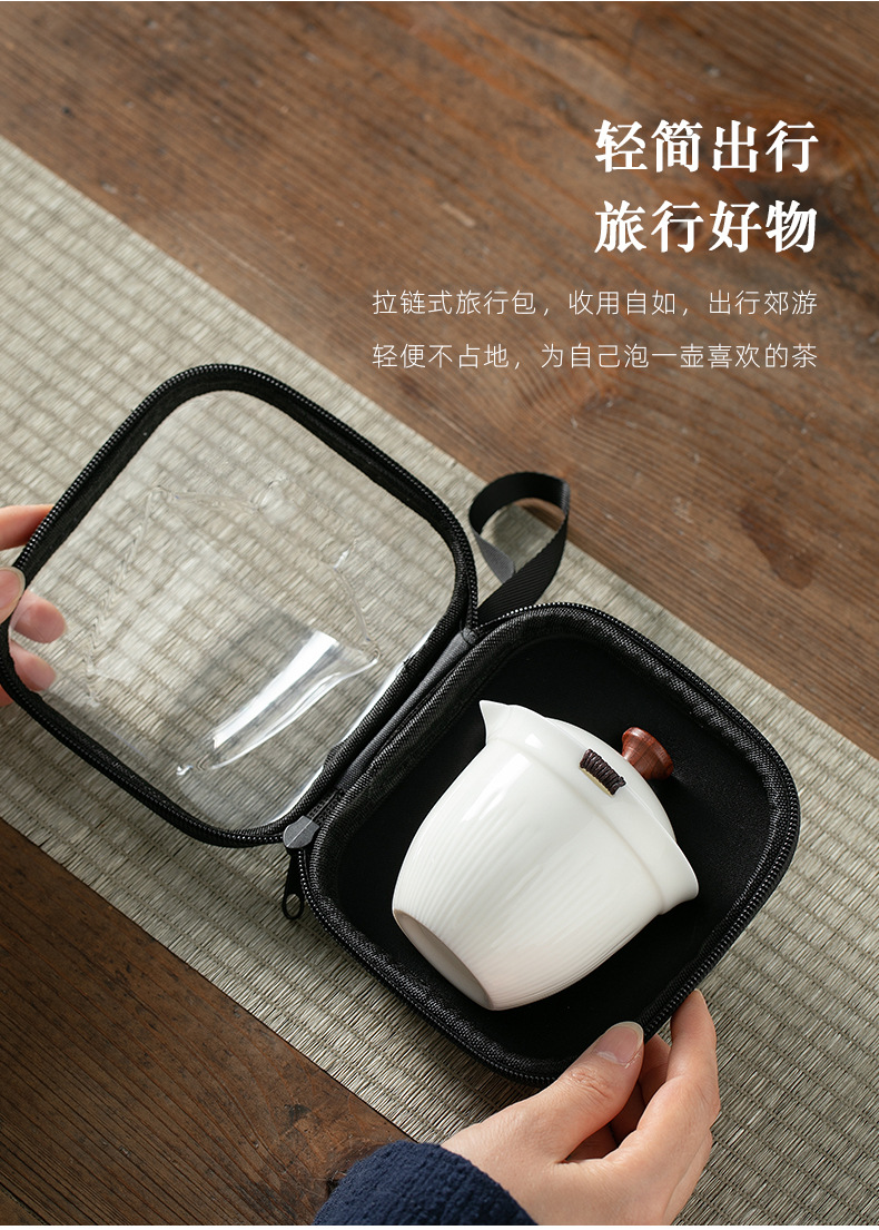 휴대용 여행 차 세트 작은 세트 장비 백색 도자기 쿵푸 찻주전자 찻잔 간단한 야외 가방 단일 익스프레스 컵스토어 가기