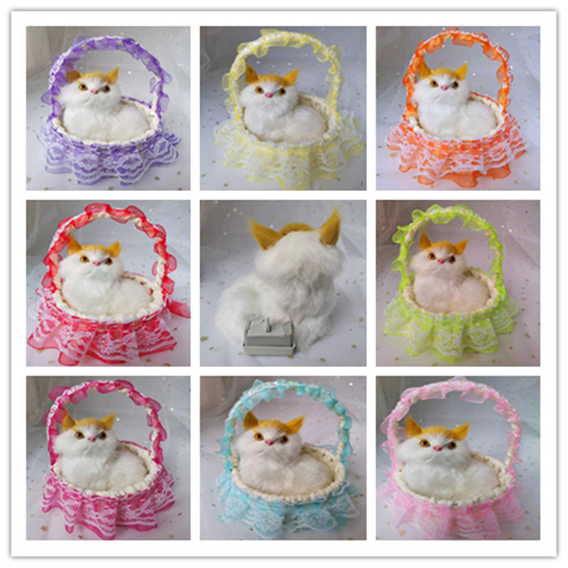 레이스 바구니 고양이 시뮬레이션 소리 새끼 고양이 봉제 인형 어린이 장난감 소년 소녀 생일 선물 도매스토어 가기