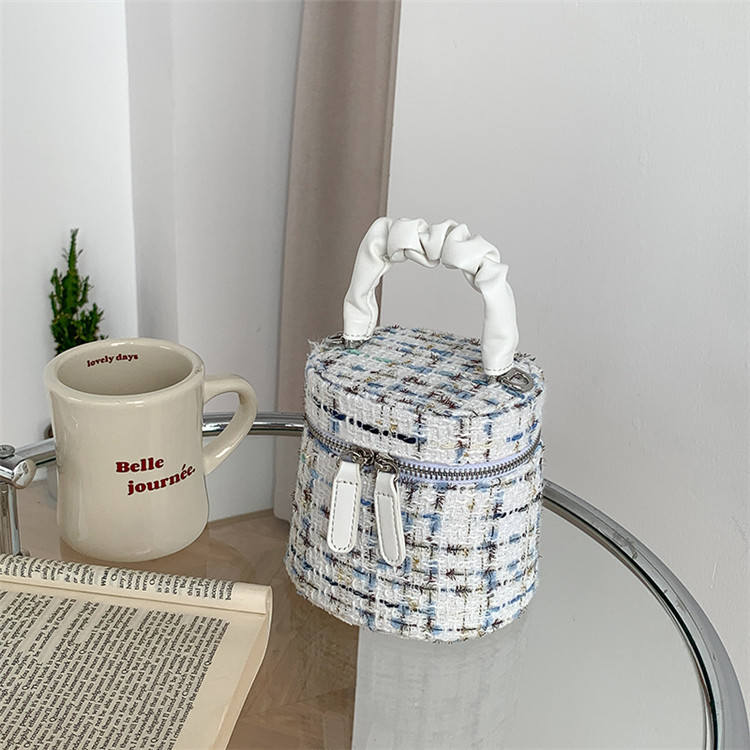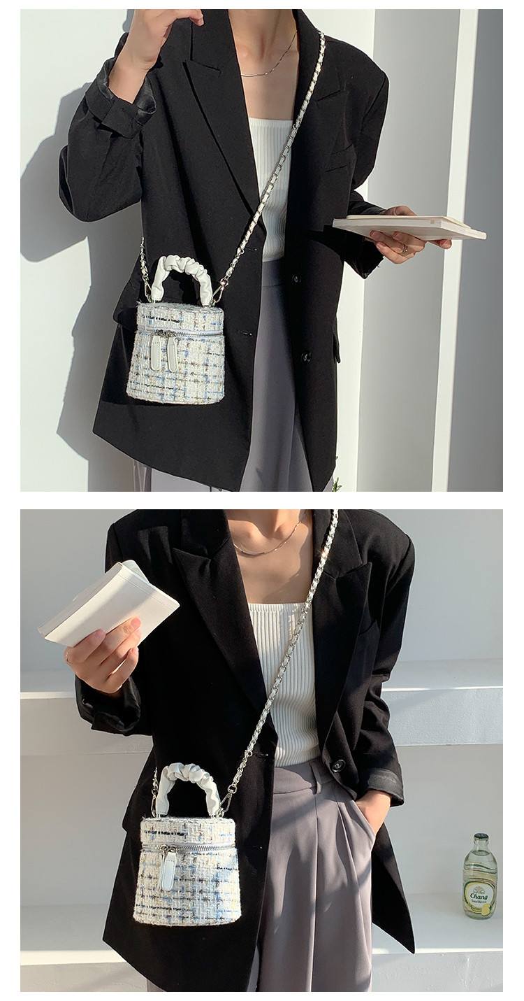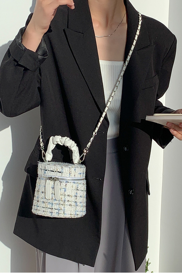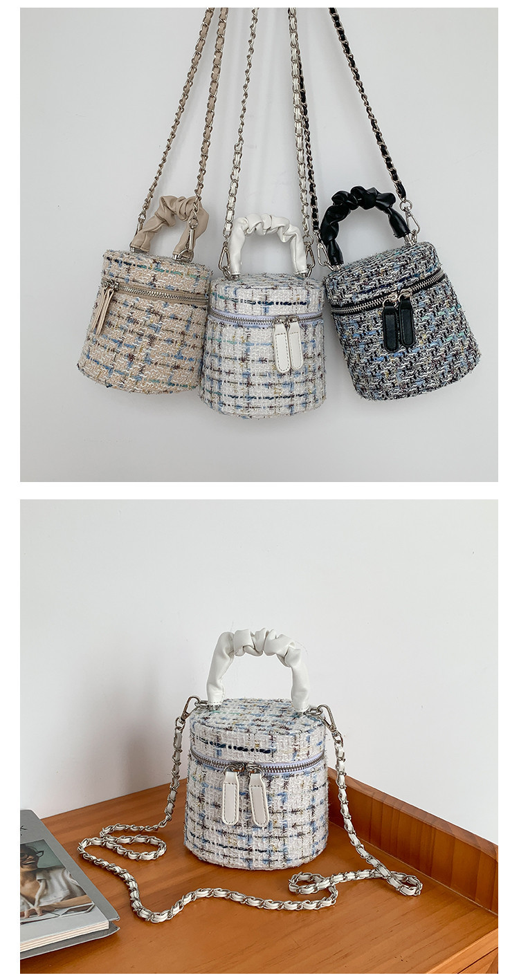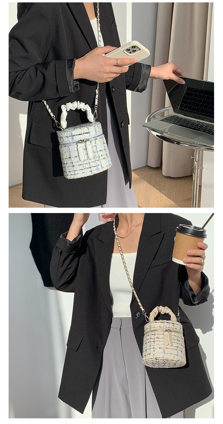 가을 겨울 스타일리시 미니 버킷백, 독특한 질감의 여성용 숄더/크로스백, 더블 지퍼 체크무늬 체인백, 여성용 다용도 가방스토어 가기
