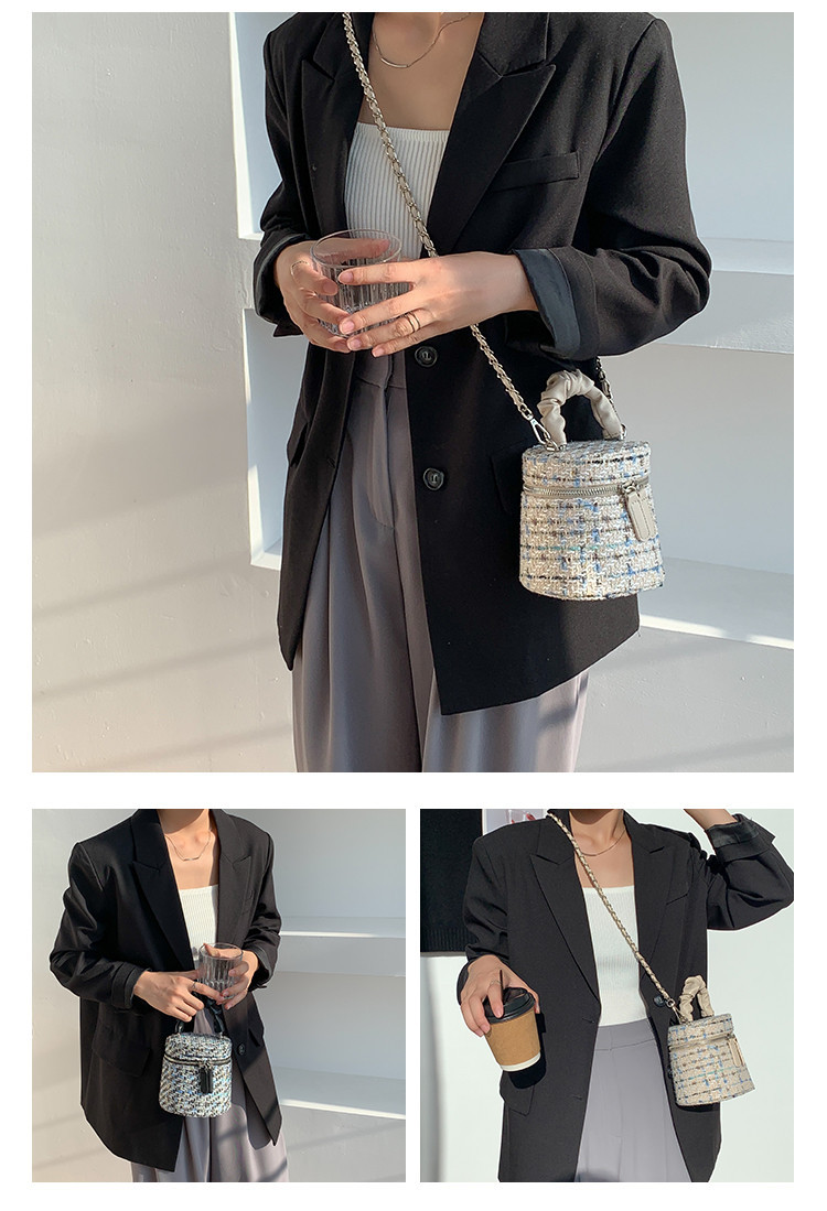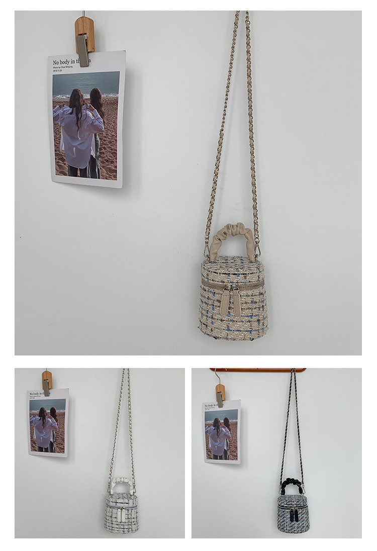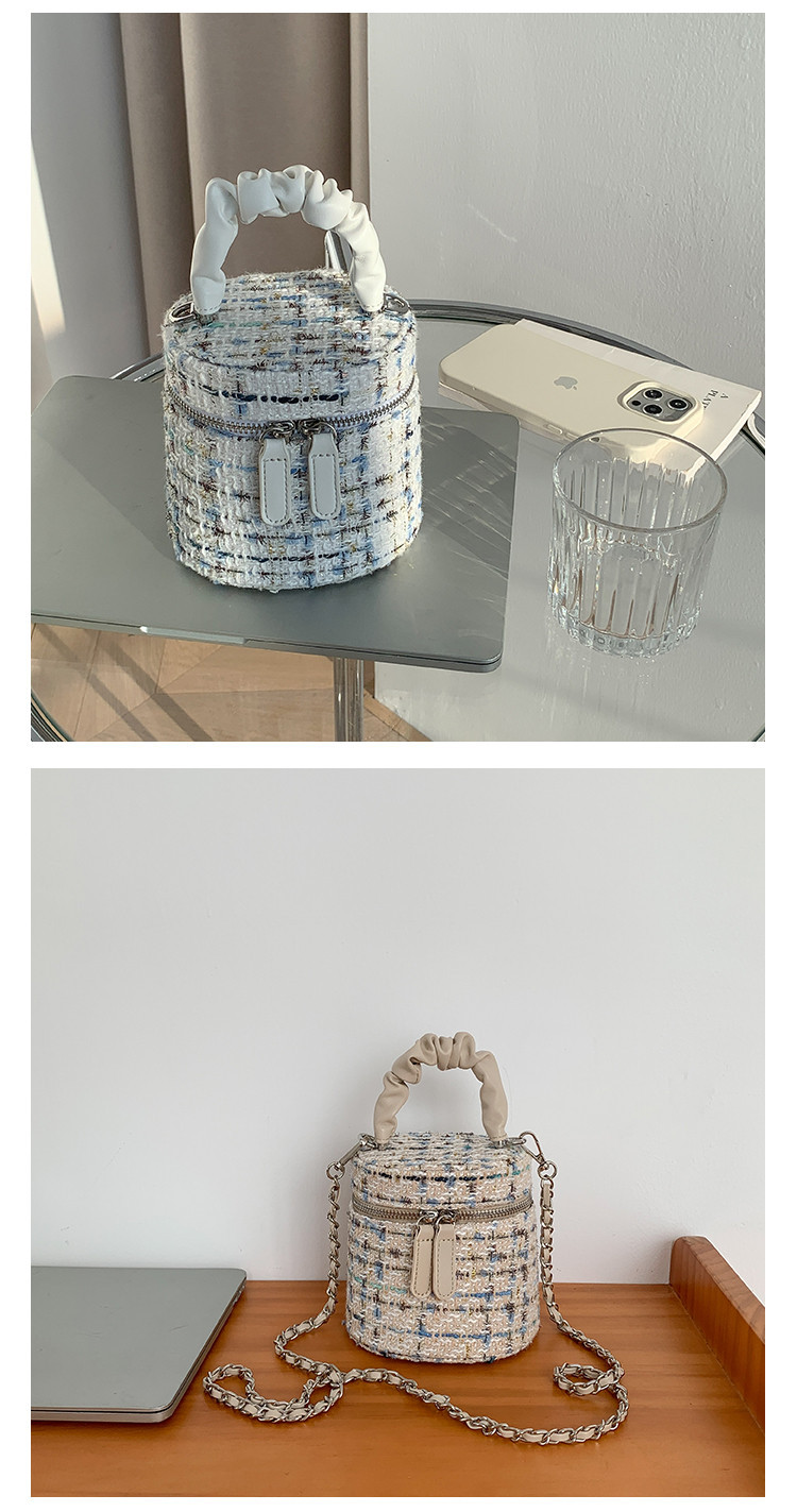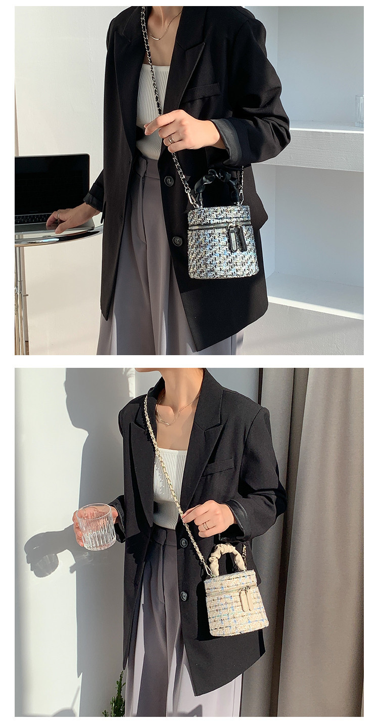 가을 겨울 스타일리시 미니 버킷백, 독특한 질감의 여성용 숄더/크로스백, 더블 지퍼 체크무늬 체인백, 여성용 다용도 가방스토어 가기