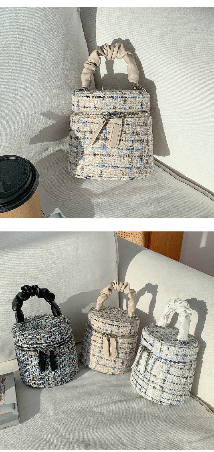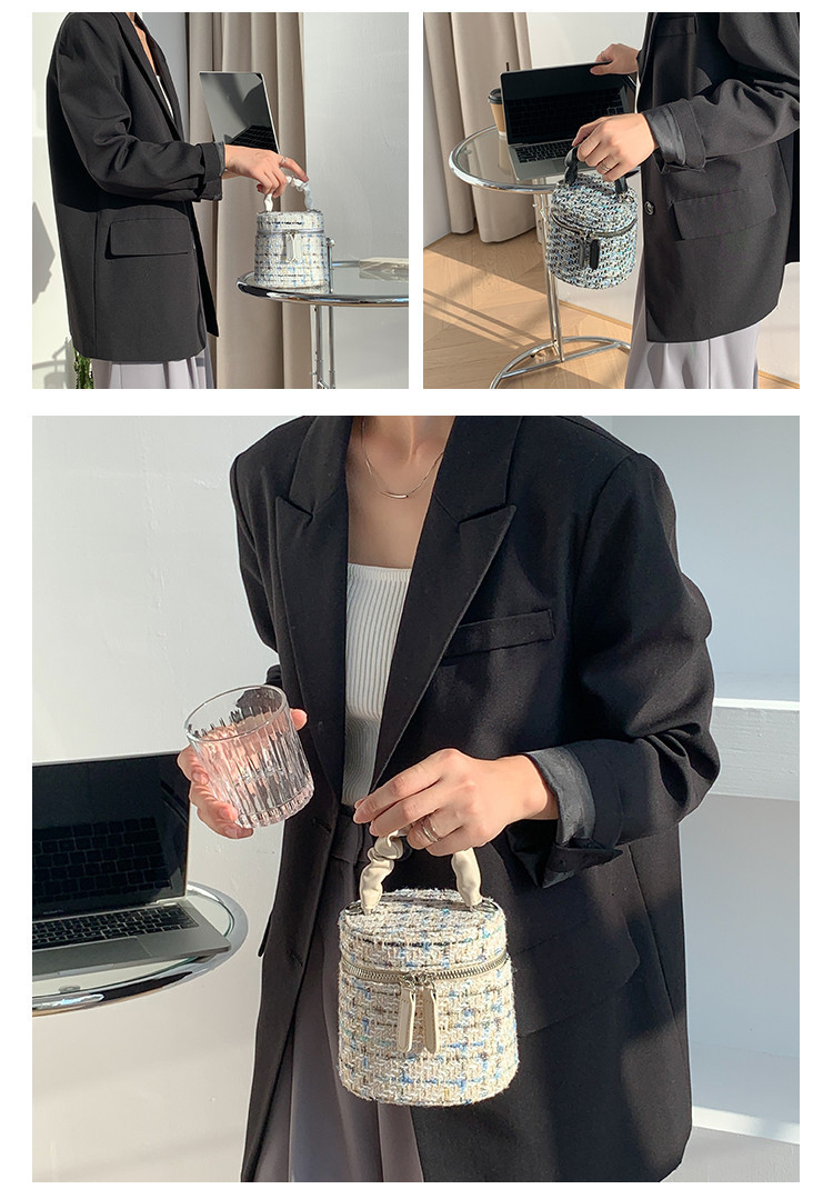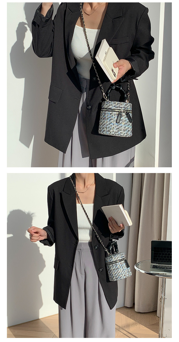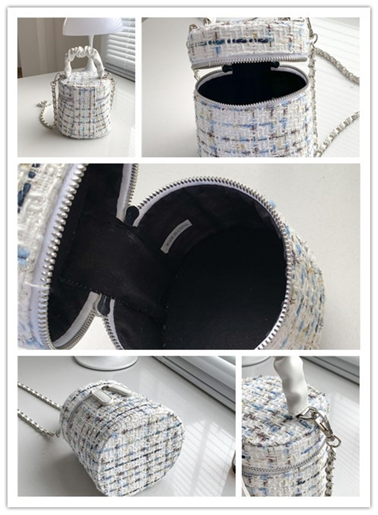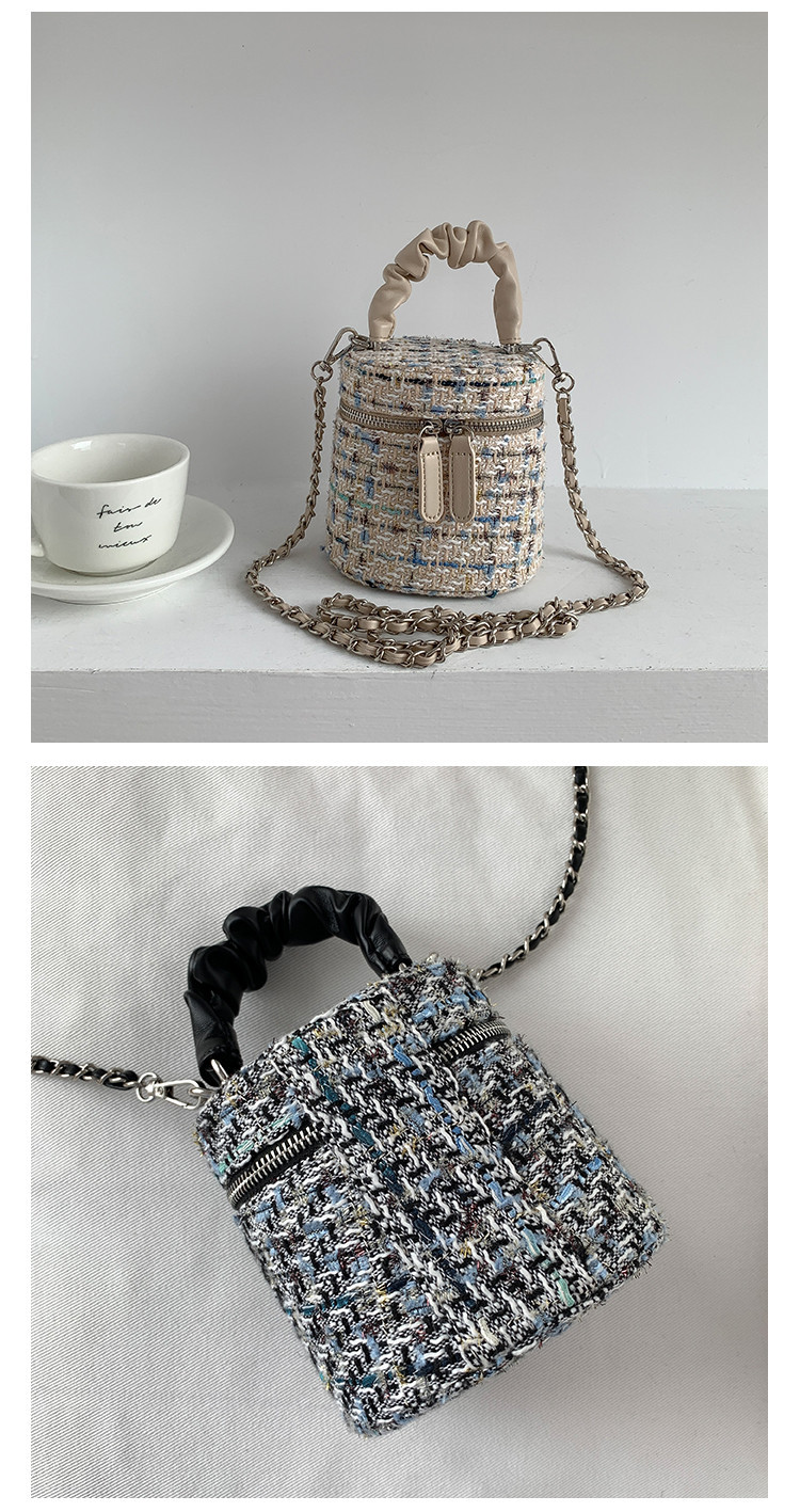 가을 겨울 스타일리시 미니 버킷백, 독특한 질감의 여성용 숄더/크로스백, 더블 지퍼 체크무늬 체인백, 여성용 다용도 가방스토어 가기