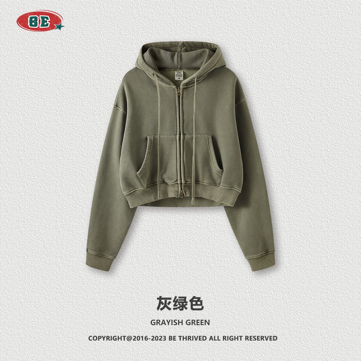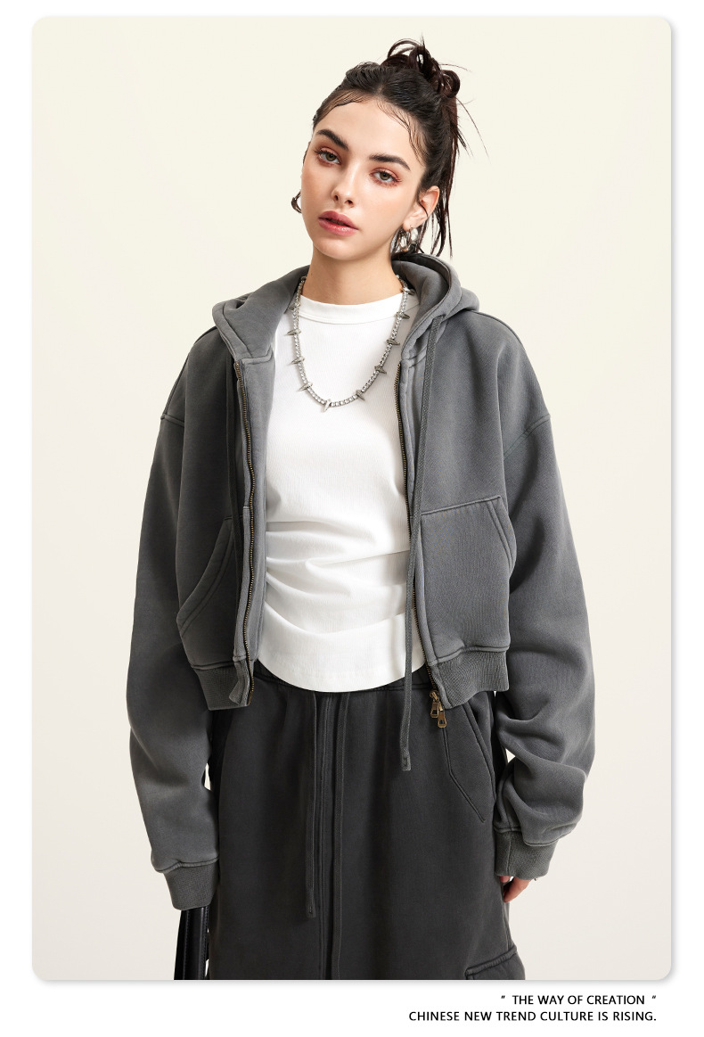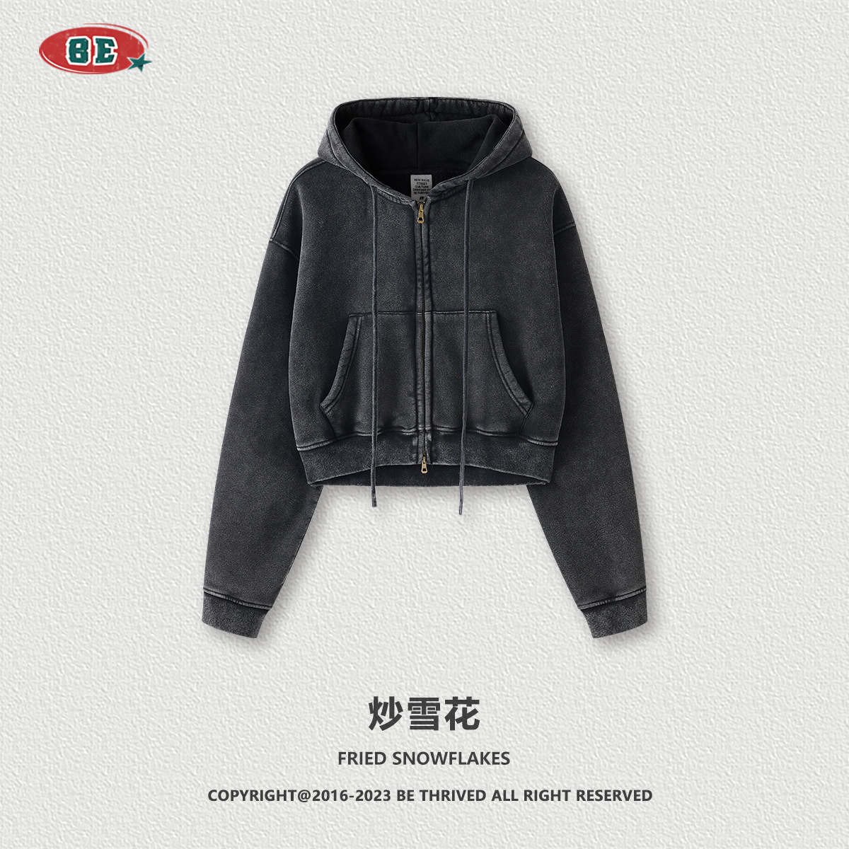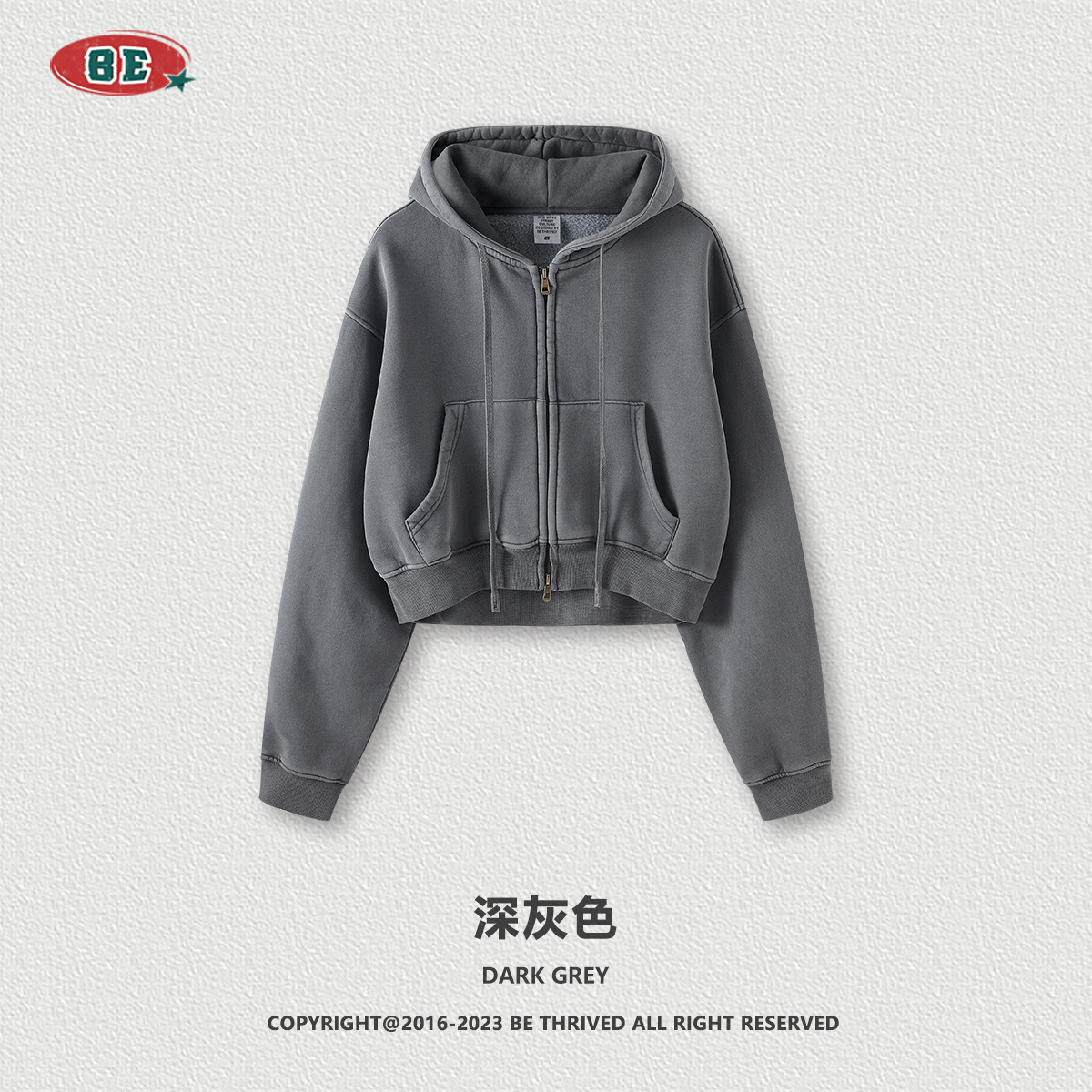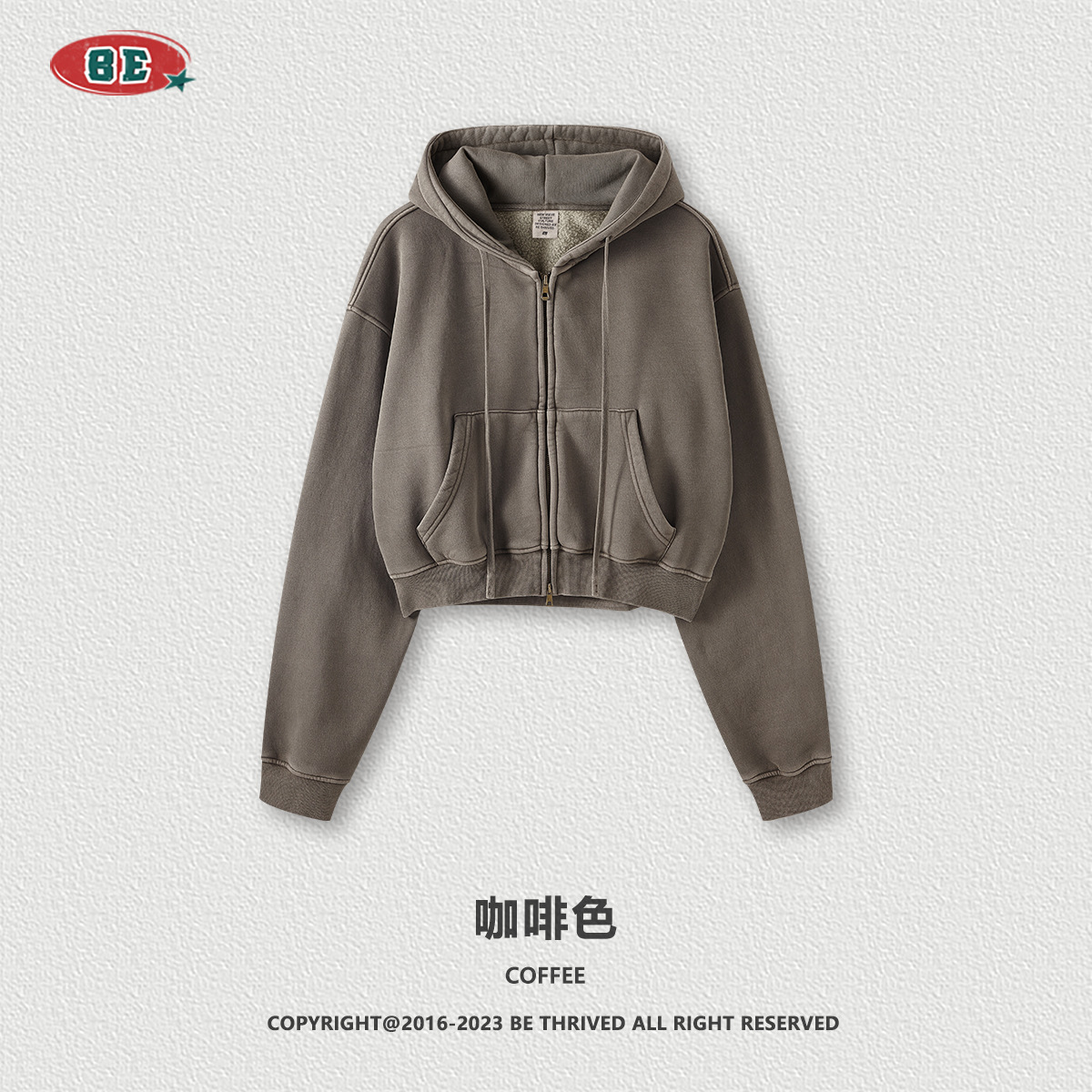 BE 여성 가을, 겨울 레트로 씻어 뜨거운 여자 운동복 지퍼 자켓 플러스 벨벳 악세사리 짧은 카디건 탑 여성용스토어 가기