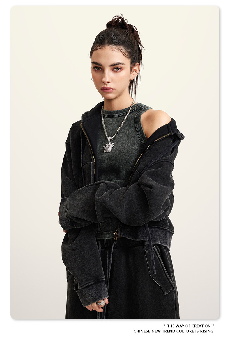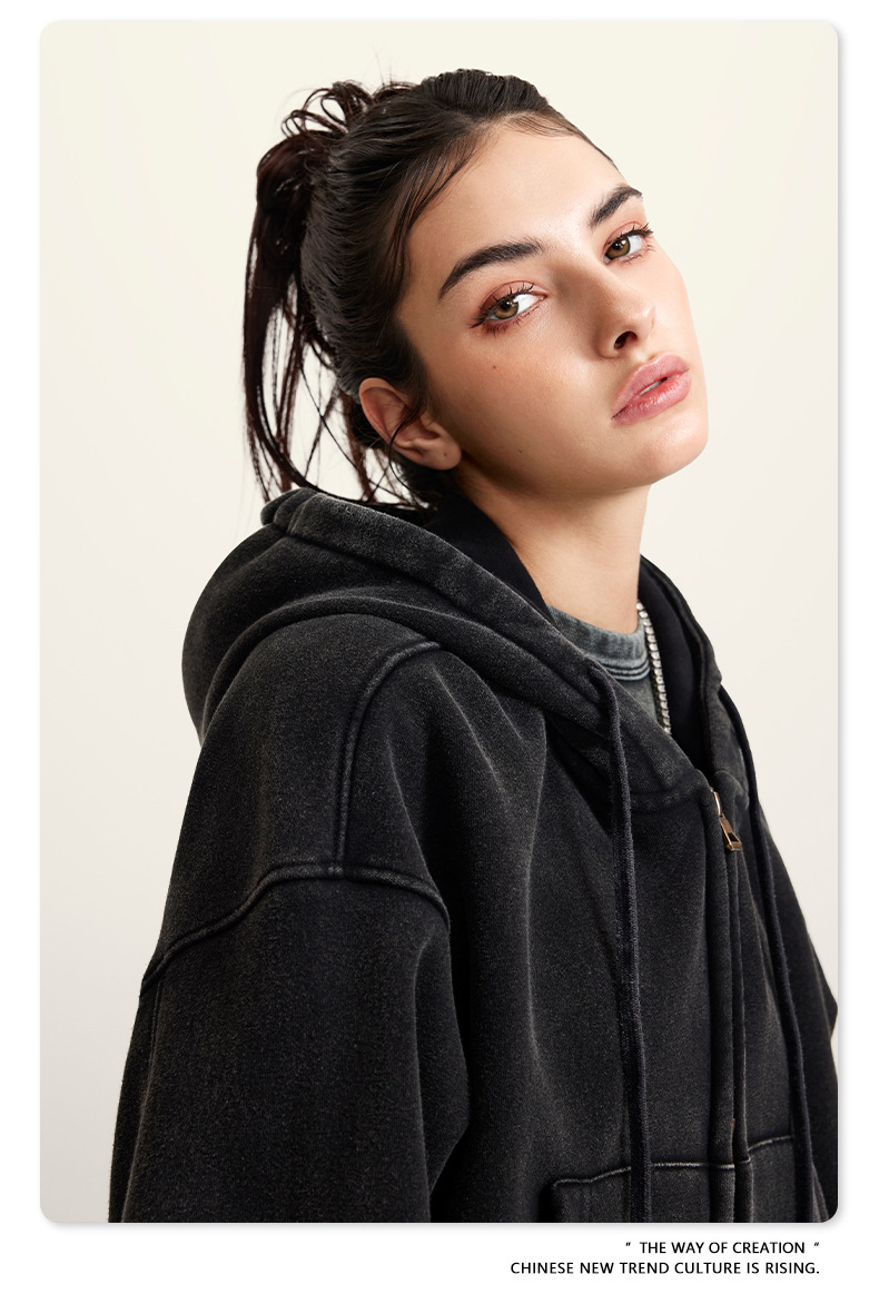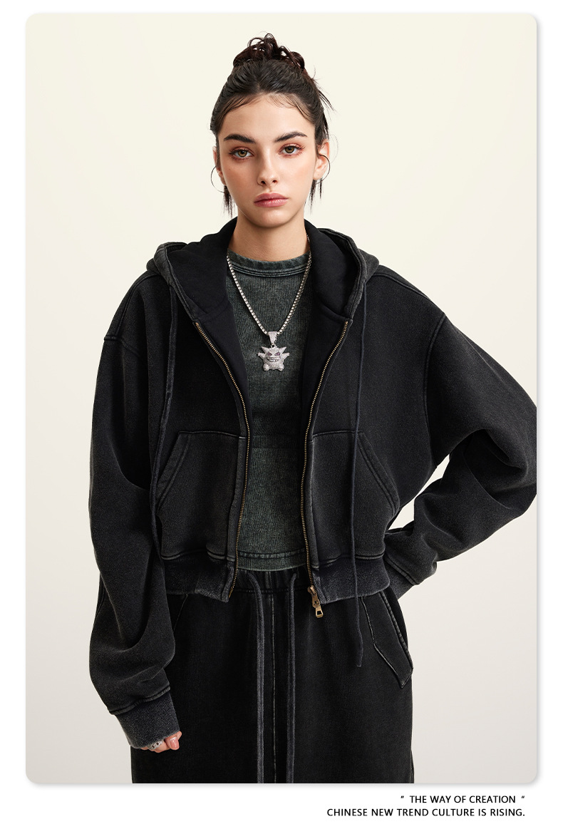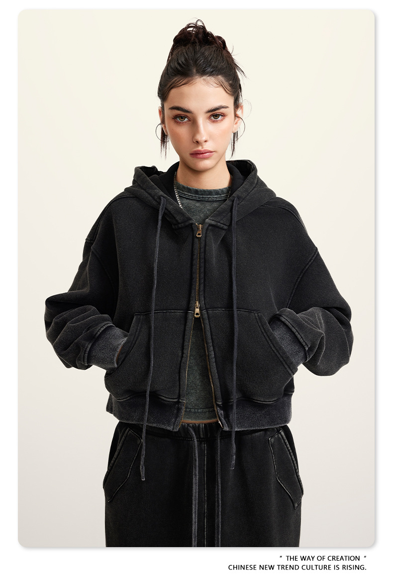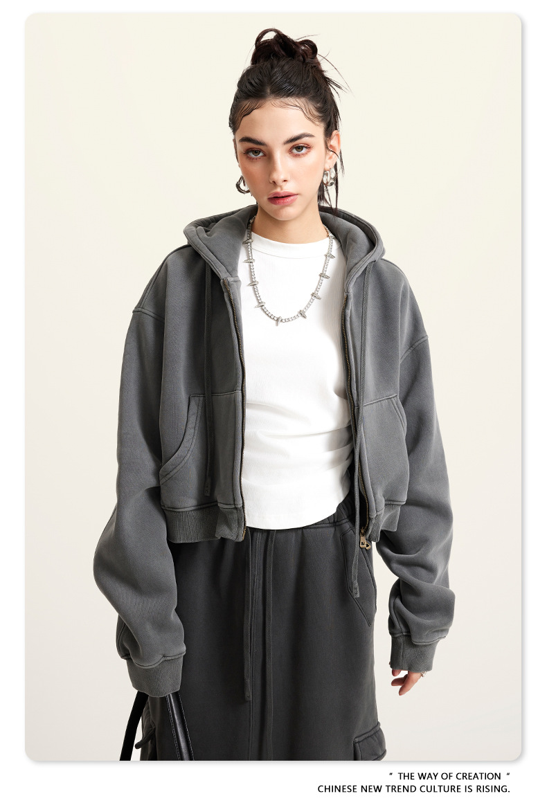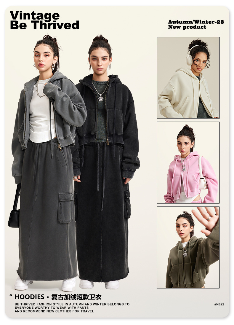 BE 여성 가을, 겨울 레트로 씻어 뜨거운 여자 운동복 지퍼 자켓 플러스 벨벳 악세사리 짧은 카디건 탑 여성용스토어 가기
