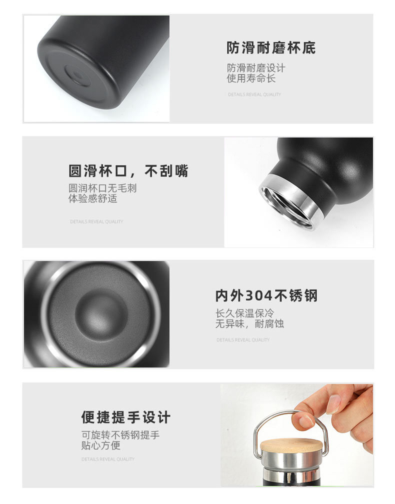 엄격 선택 500ml 미국식 대입 보온병 스테인리스 스틸 대용량 스포츠 주전자 야외 등산 휴대용 대나무 커버