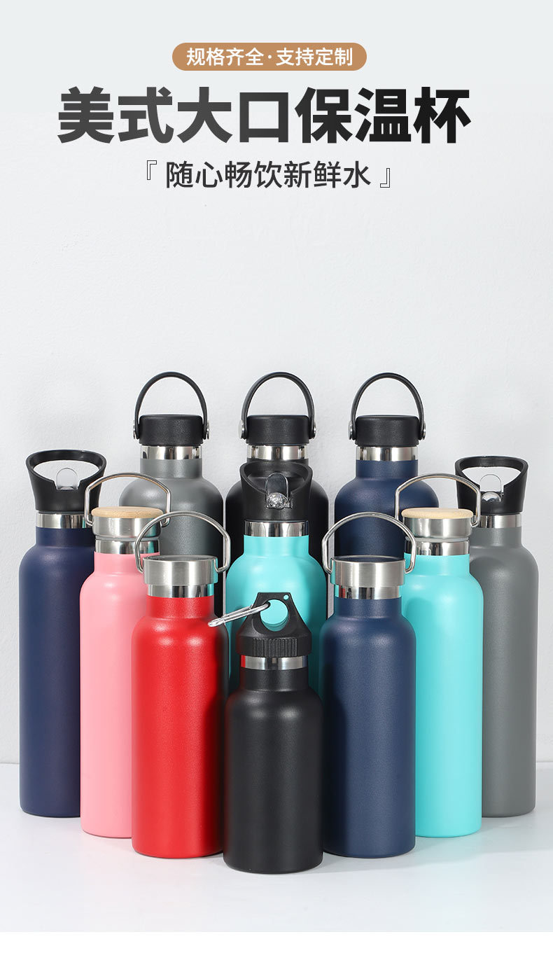 엄격 선택 500ml 미국식 대입 보온병 스테인리스 스틸 대용량 스포츠 주전자 야외 등산 휴대용 대나무 커버스토어 가기