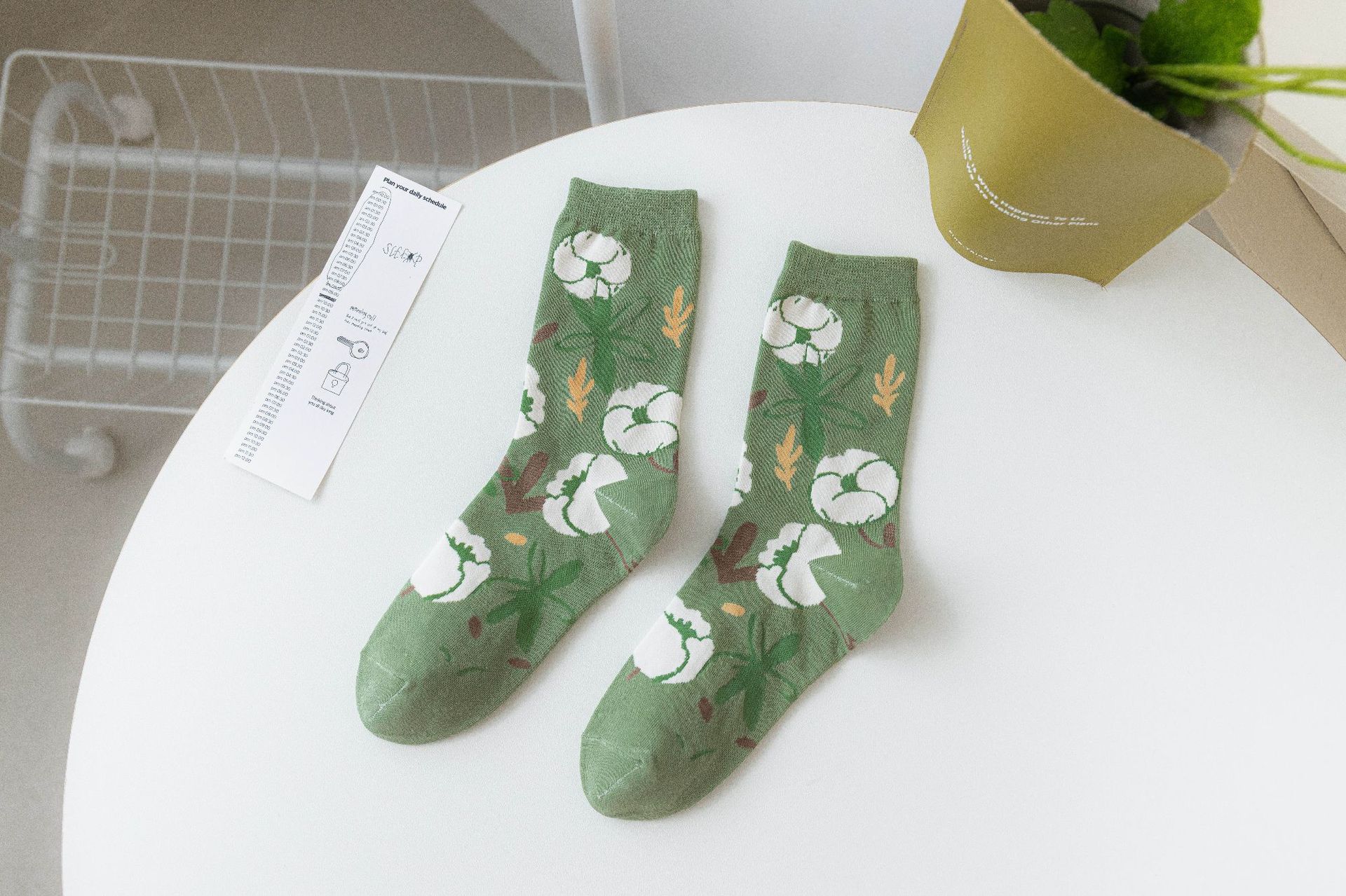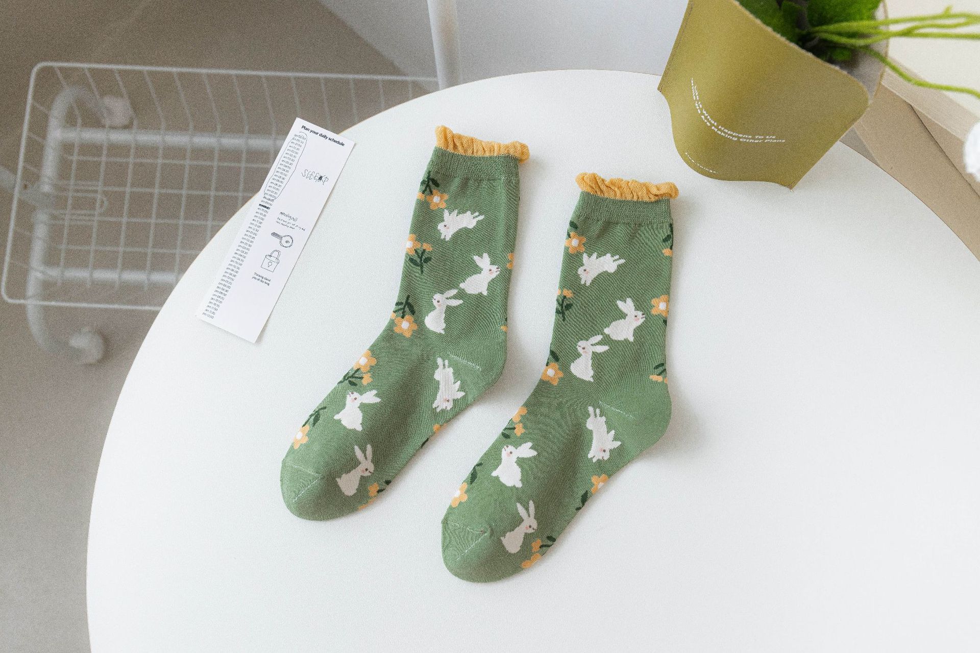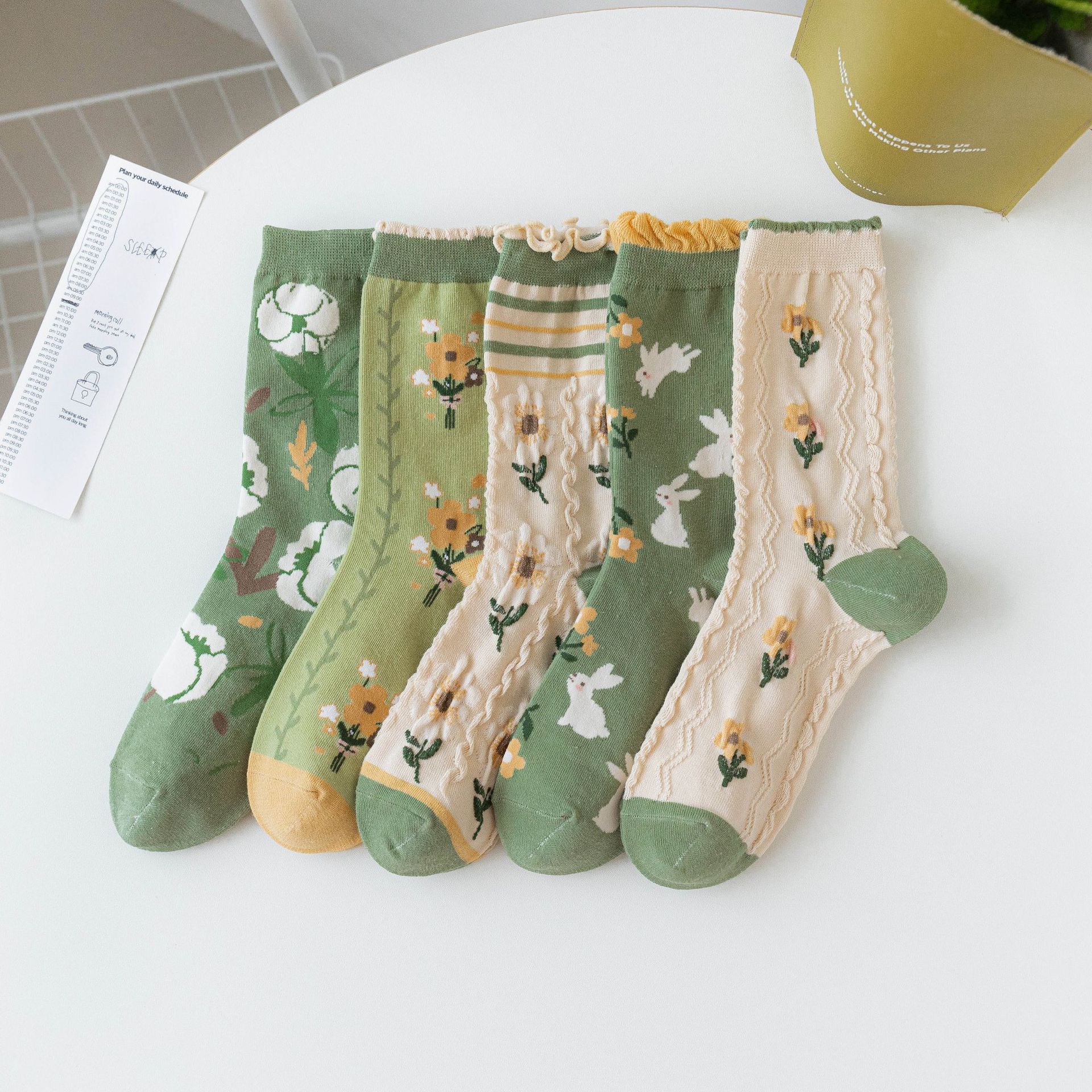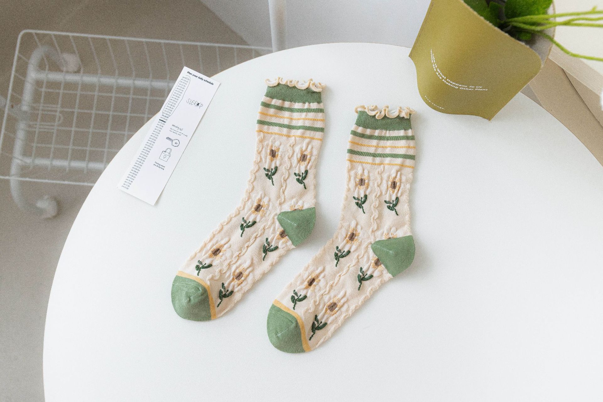 여성용 양말 가을 겨울 신상품 숲속풍 여성 중목 양말 일본풍 레이스 퍼프 양말 여성용 순면 중목 양말 도매