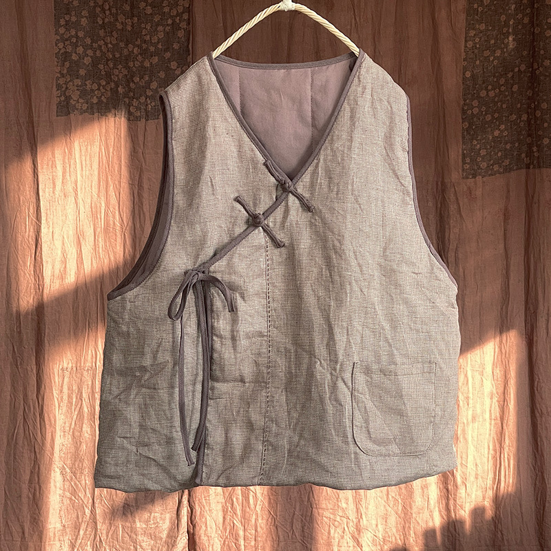 Qingqixuan/수제 원사 염색 린넨 여성용 조끼 최고 수제 버클 레트로 오리지널면 및 린넨 여성용 조끼스토어 가기