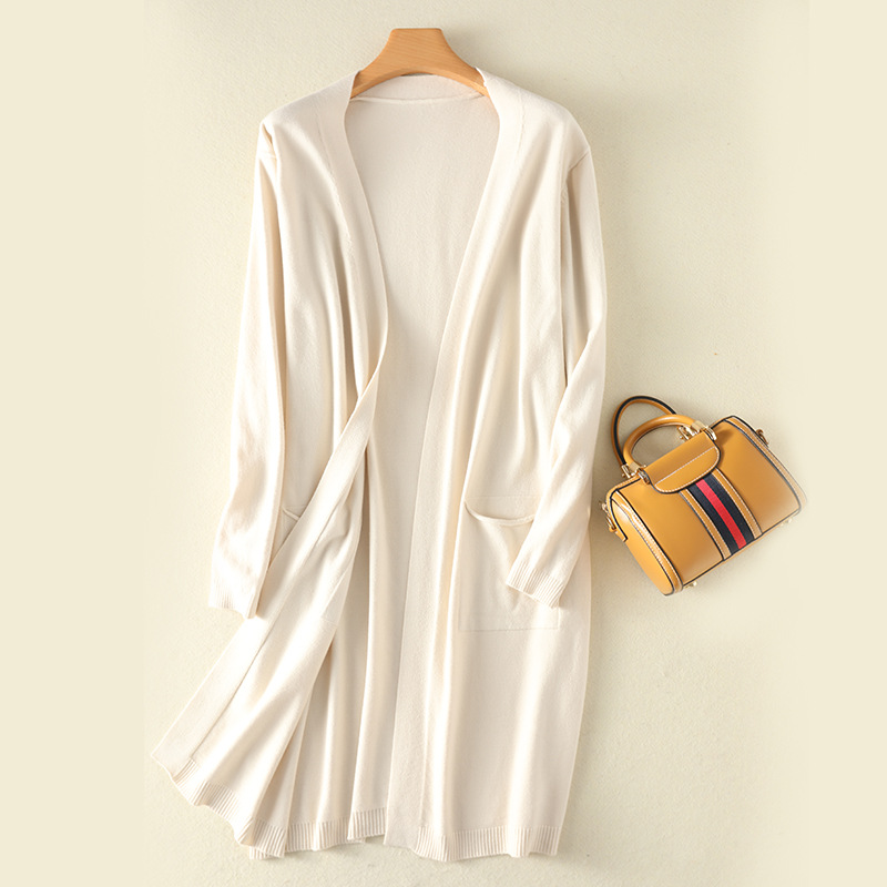 새로운 중장 코트 여성용 스웨터 가을과 겨울 니트웨어 겉옷 단색 긴 소매 겉옷 무릎 울 카디건 여성 위에 착용스토어 가기