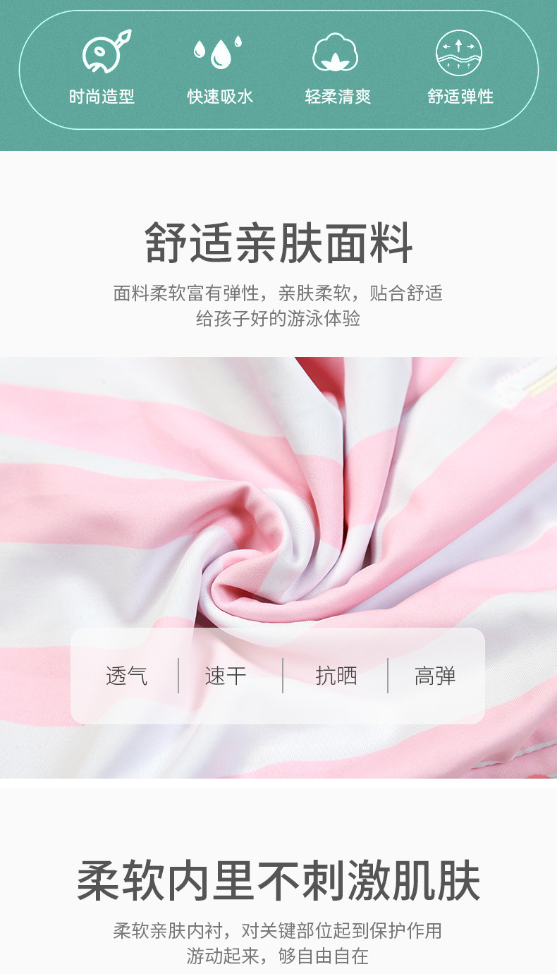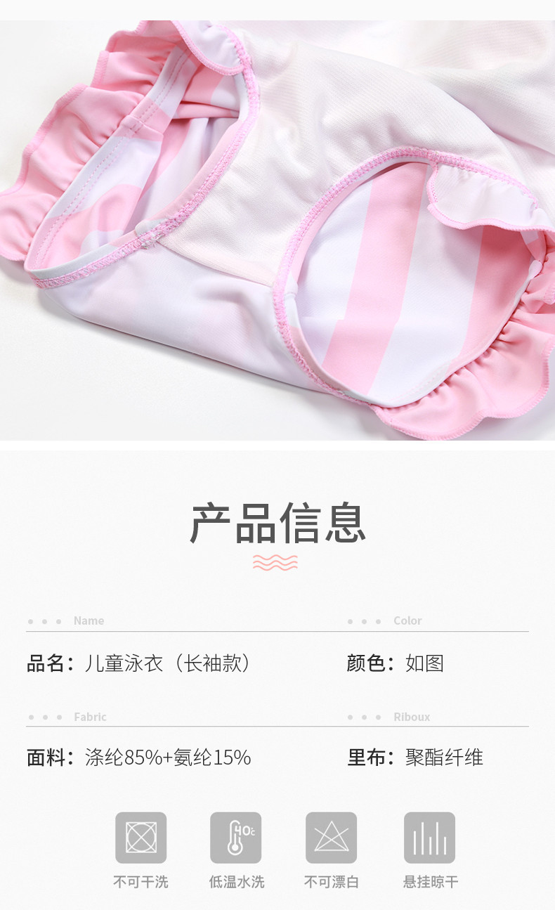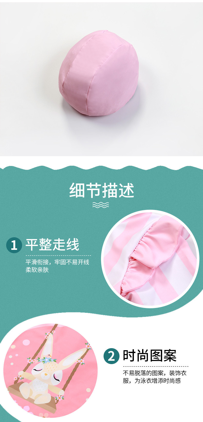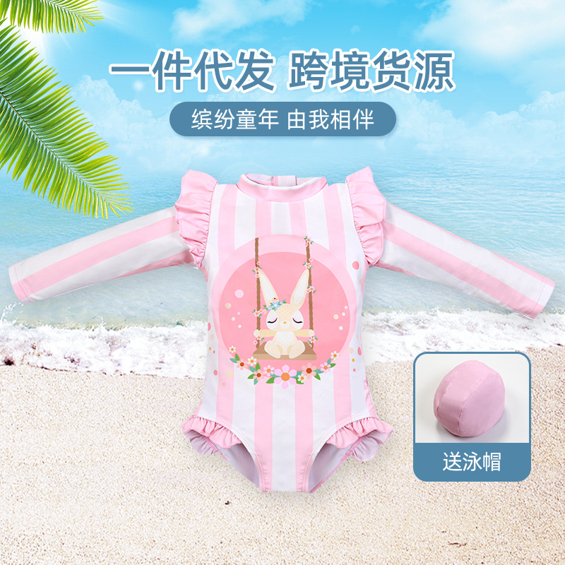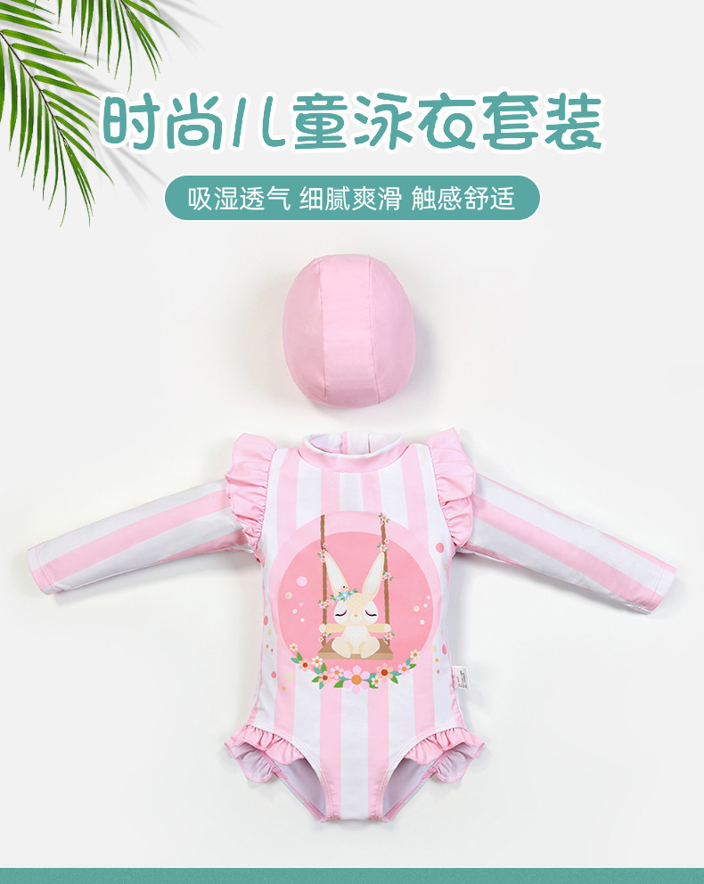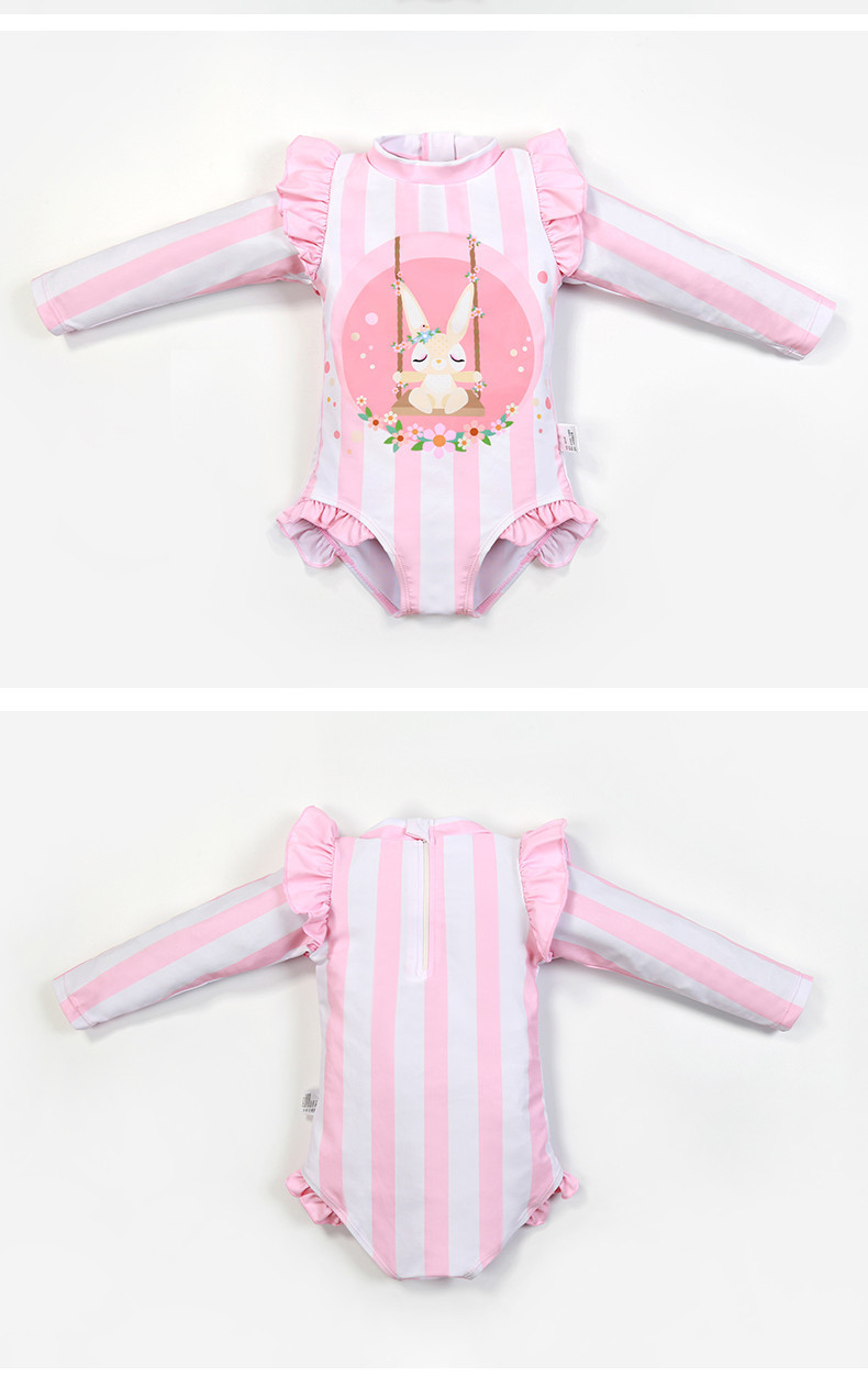 여자 수영복 원피스 귀여운 만화 토끼 긴팔 태양 보호 수영복 소형, 중형 및 대형 어린이 줄무늬 소녀 수영복